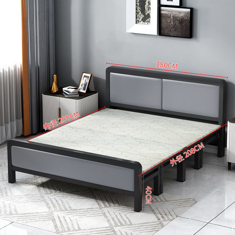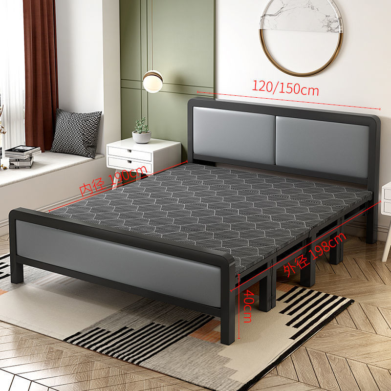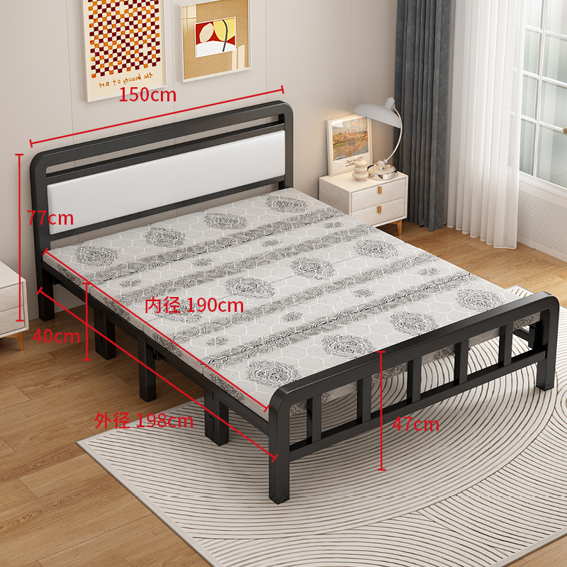 접이식 싱글 침대 점심 침대 나무 침대 간단한 나무 침대 더블 철 프레임 1.35m 임대 주택 공장스토어 가기