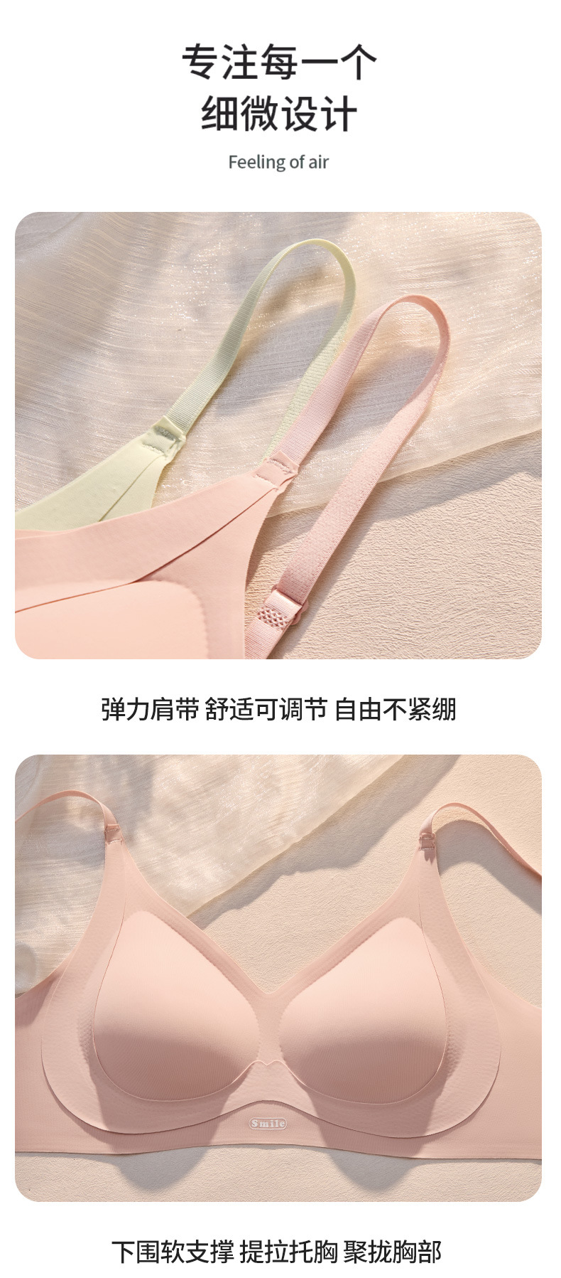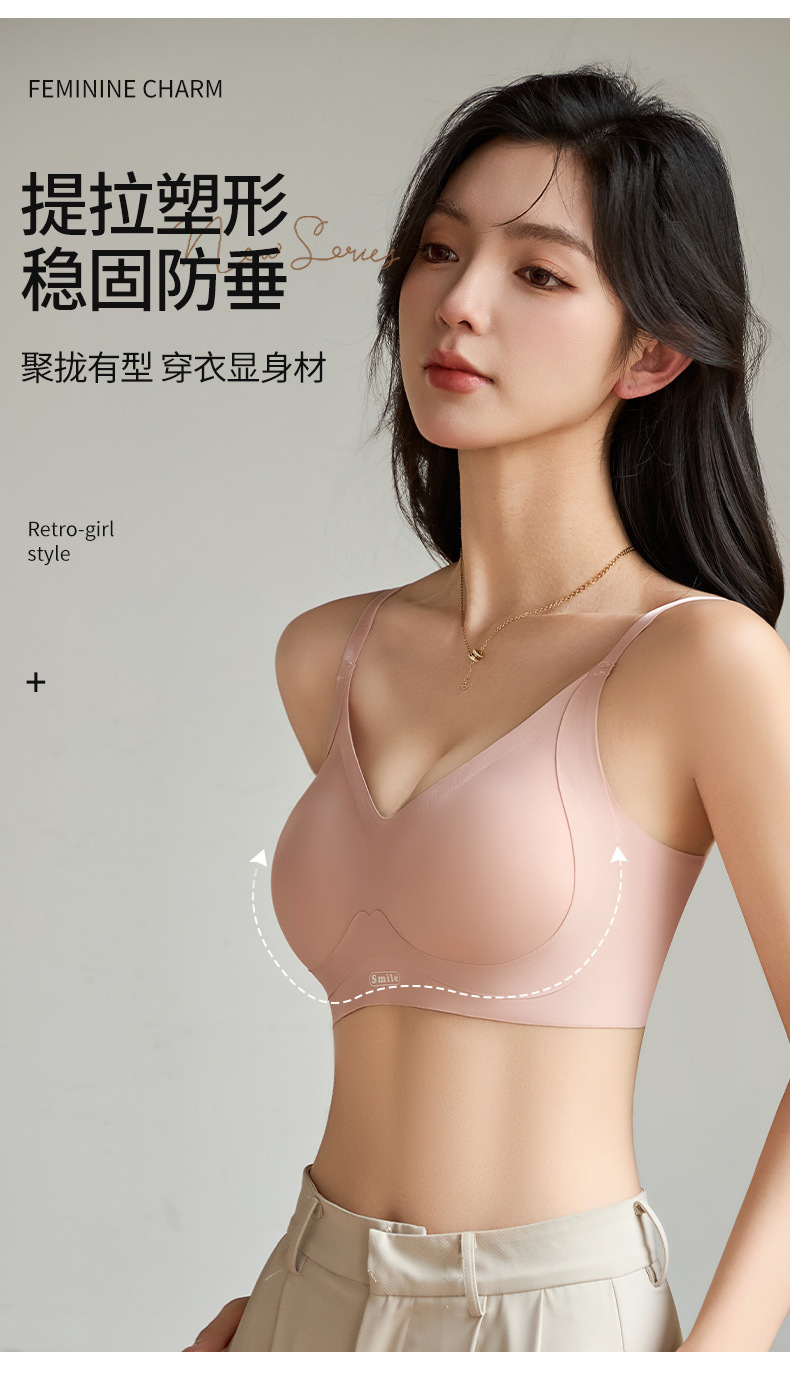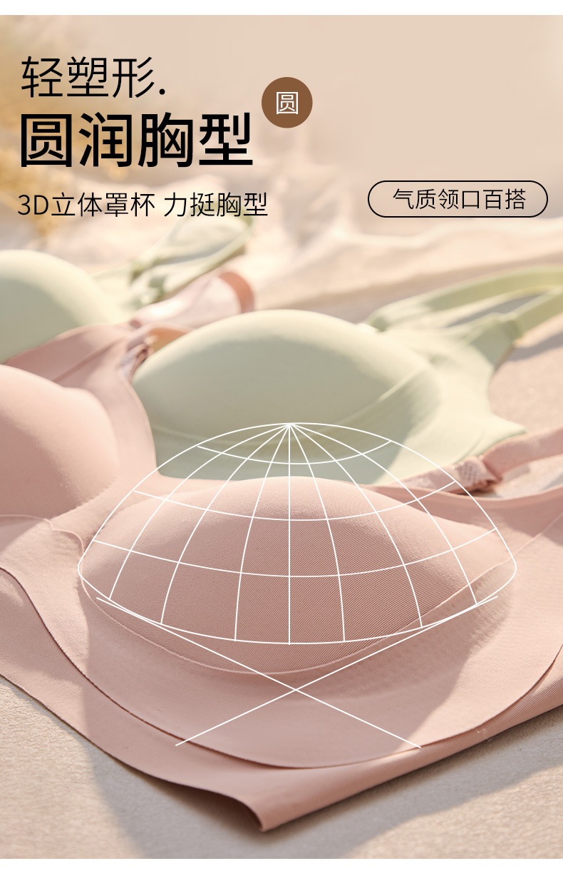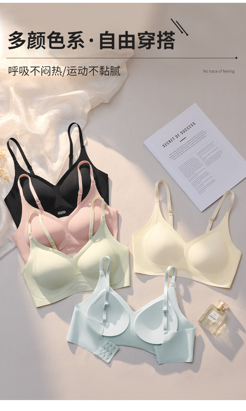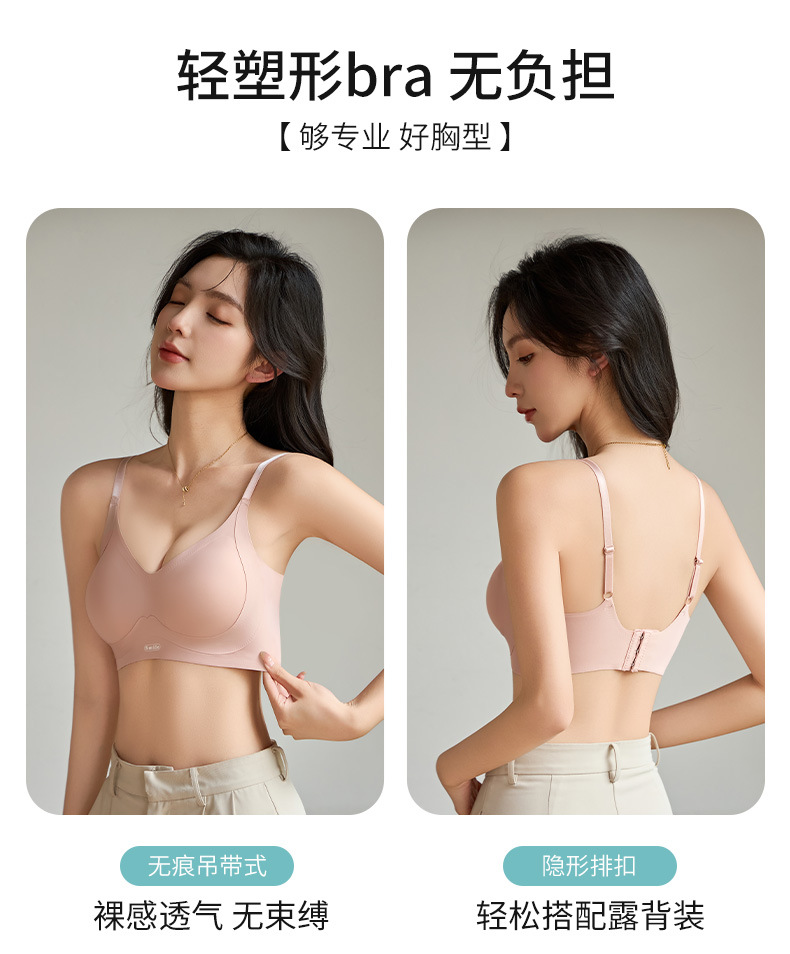 일체형 고정컵, 가슴이 작은 여성을 위한 흔적 없는 속옷, 노와이어 젤리 누드 느낌의 통기성 소녀 브라