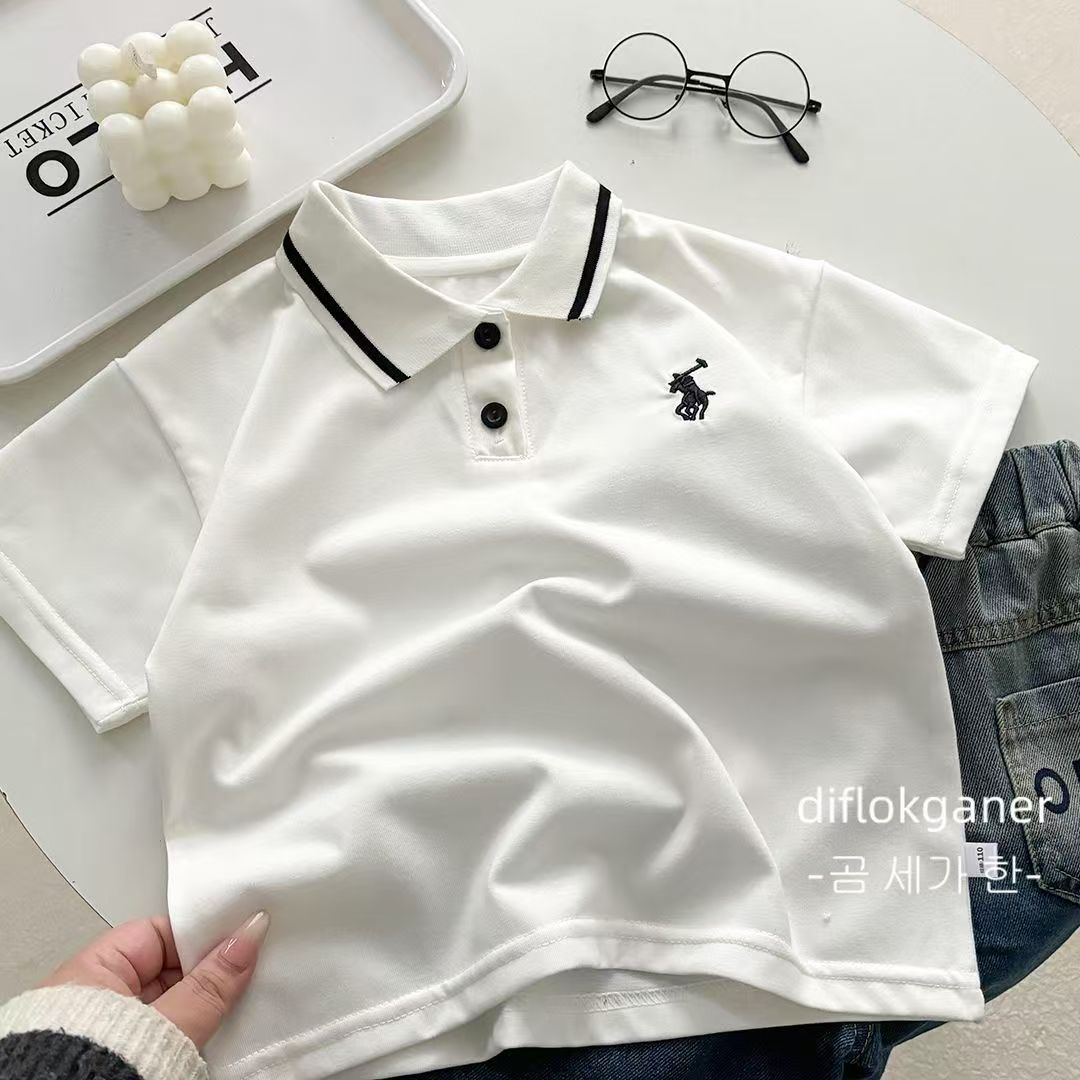 소년 반팔 폴로 셔츠 새로운 어린이 얇은 캐주얼 옷깃 스포츠 반팔 티셔츠 아기 스타일 여름 티셔츠