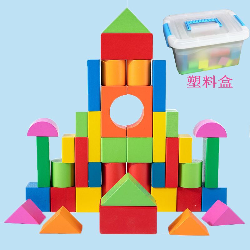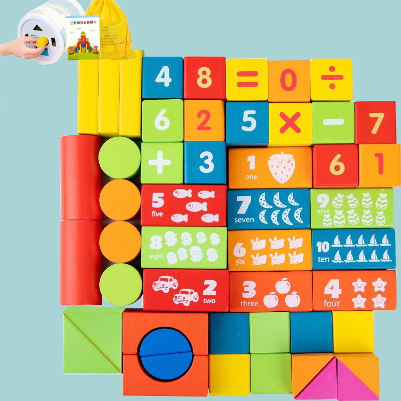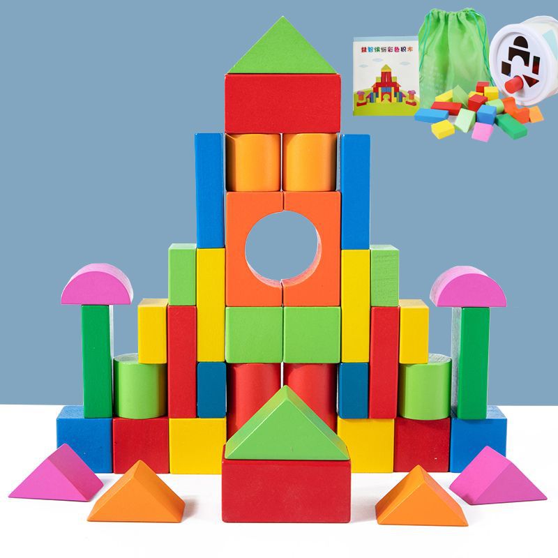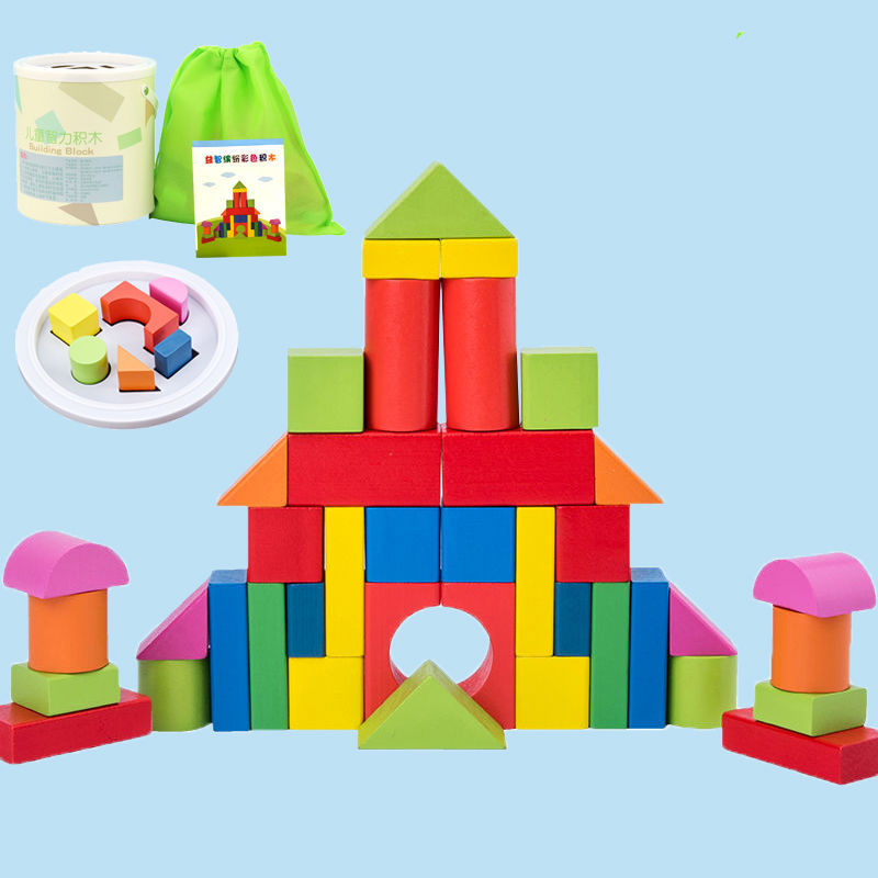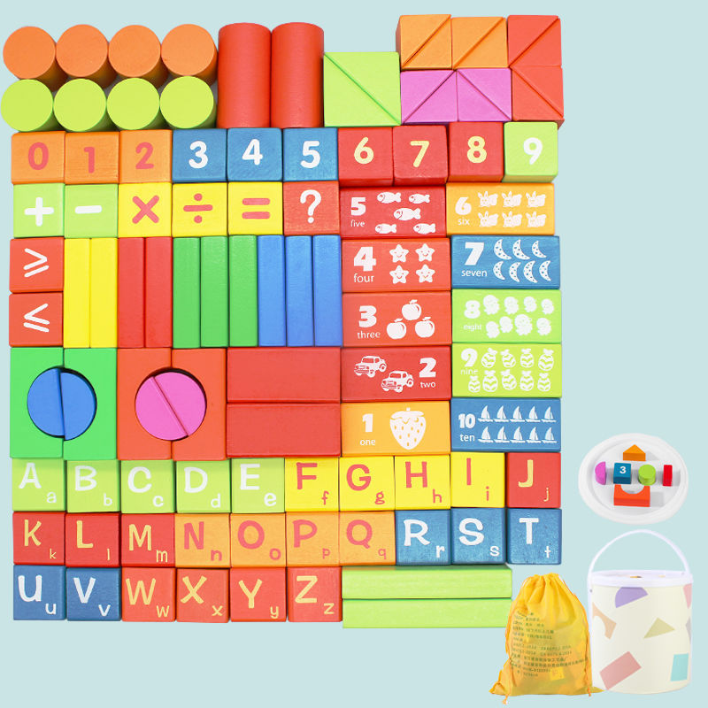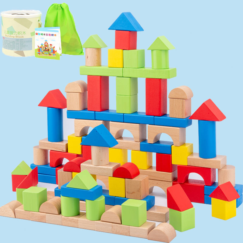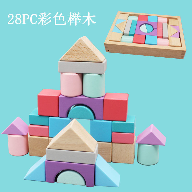 어린 아이들의 나무 교육용 다채로운 단단한 나무 빌딩 블록 장난감 대형 입자 빌딩 블록 큐브 배럴 빌딩 블록 교육 보조 장치스토어 가기