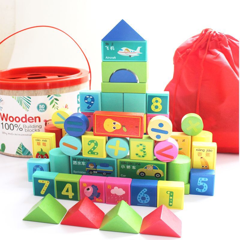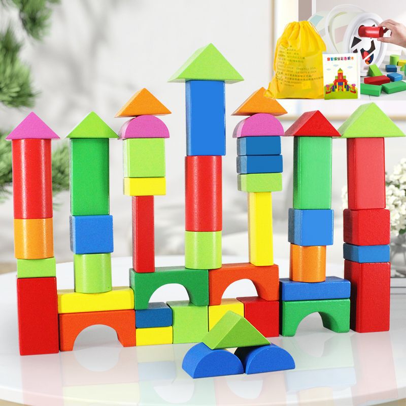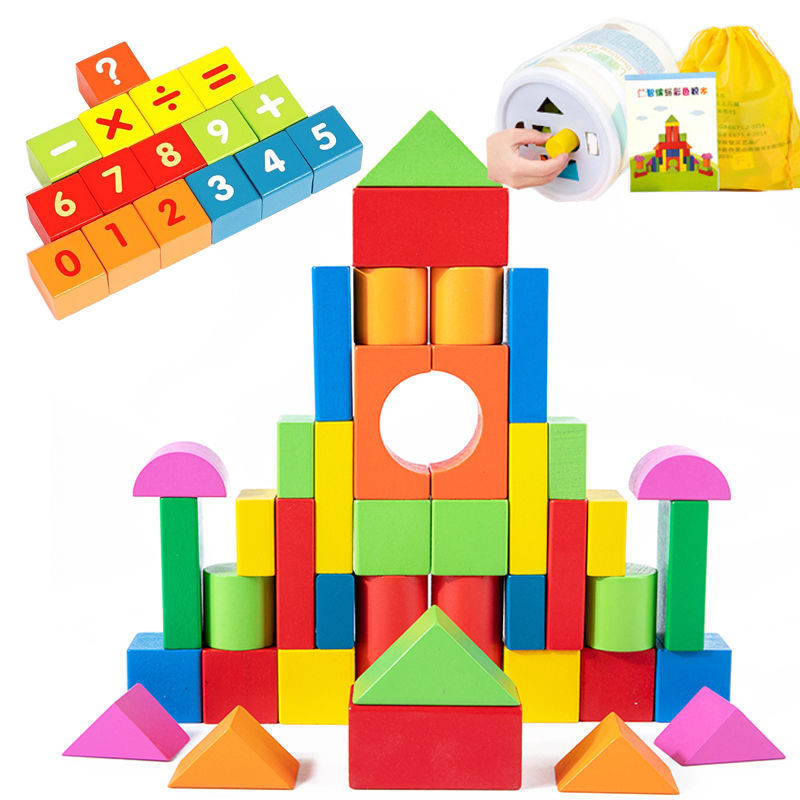 어린 아이들의 나무 교육용 다채로운 단단한 나무 빌딩 블록 장난감 대형 입자 빌딩 블록 큐브 배럴 빌딩 블록 교육 보조 장치
