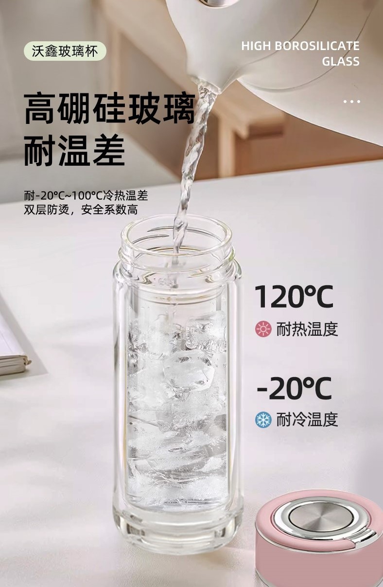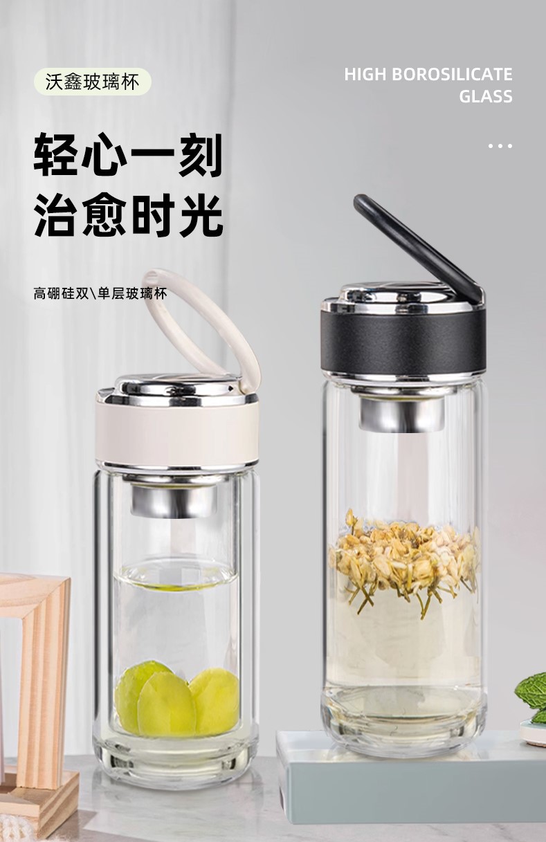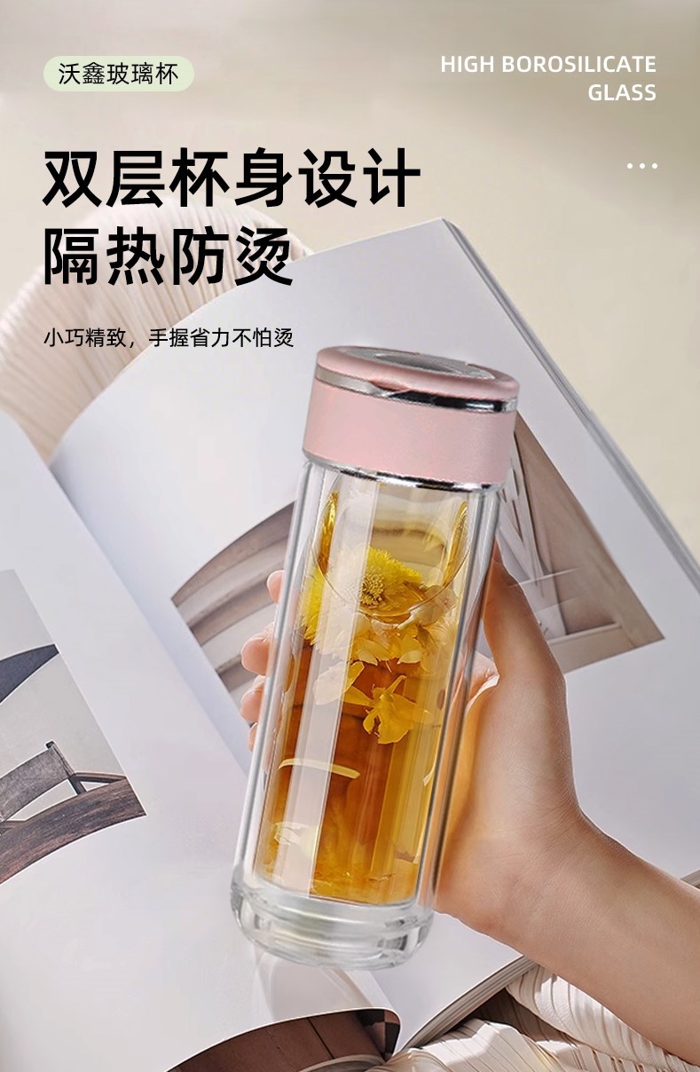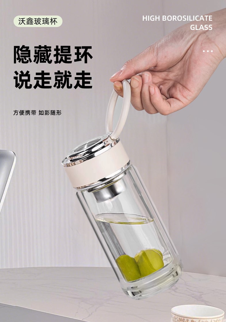 고붕규산 이중 유리컵, 손잡이 포함, 휴대용 여성용 물컵, 차와 물 분리, 단열 차컵 도매스토어 가기