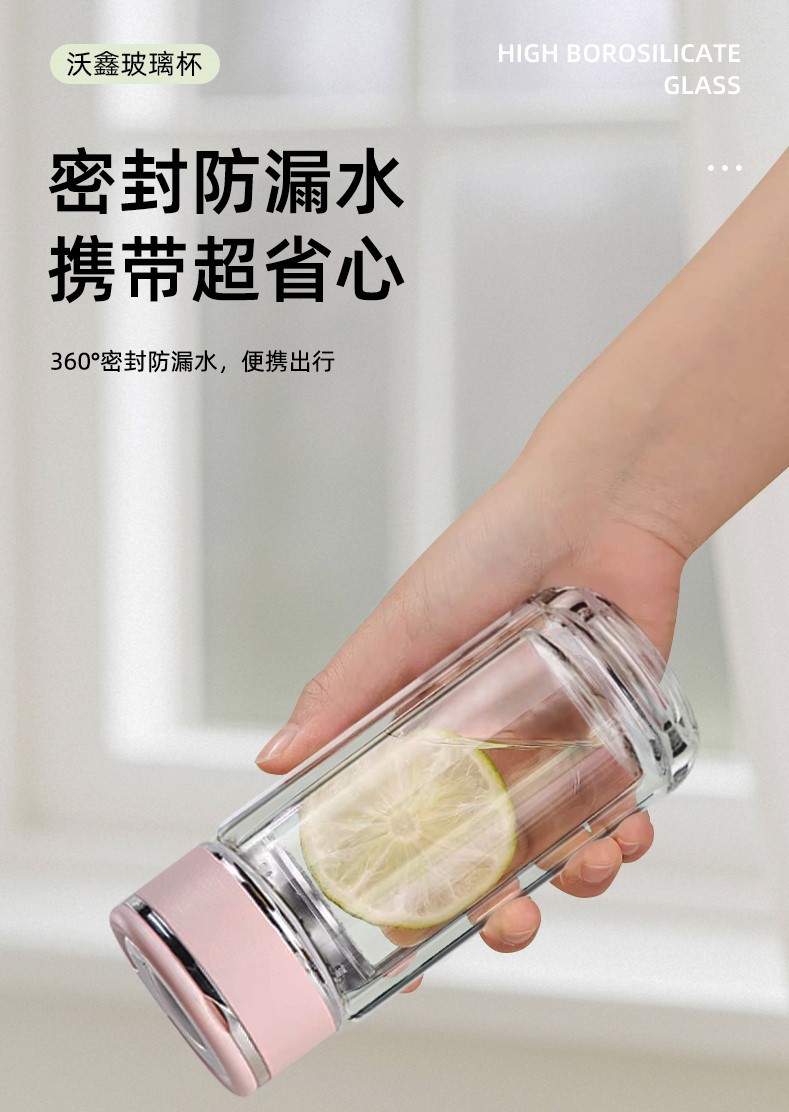 고붕규산 이중 유리컵, 손잡이 포함, 휴대용 여성용 물컵, 차와 물 분리, 단열 차컵 도매