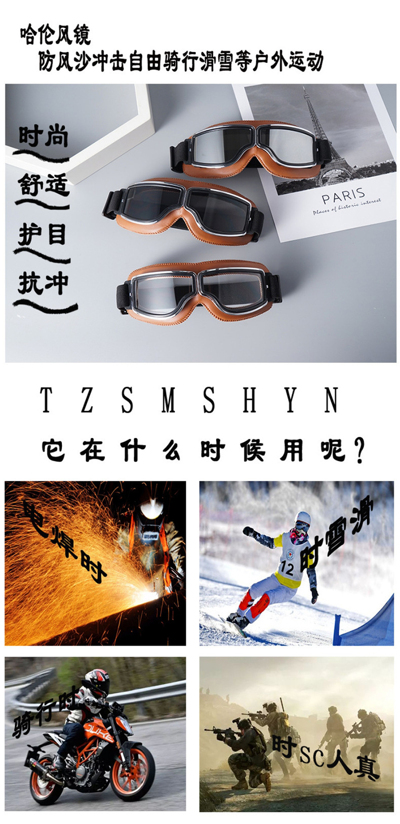 방풍 고글, 오토바이 방풍 고글, 복고풍 헬멧 고글, 고글, 도매 국경 간 직송 보호