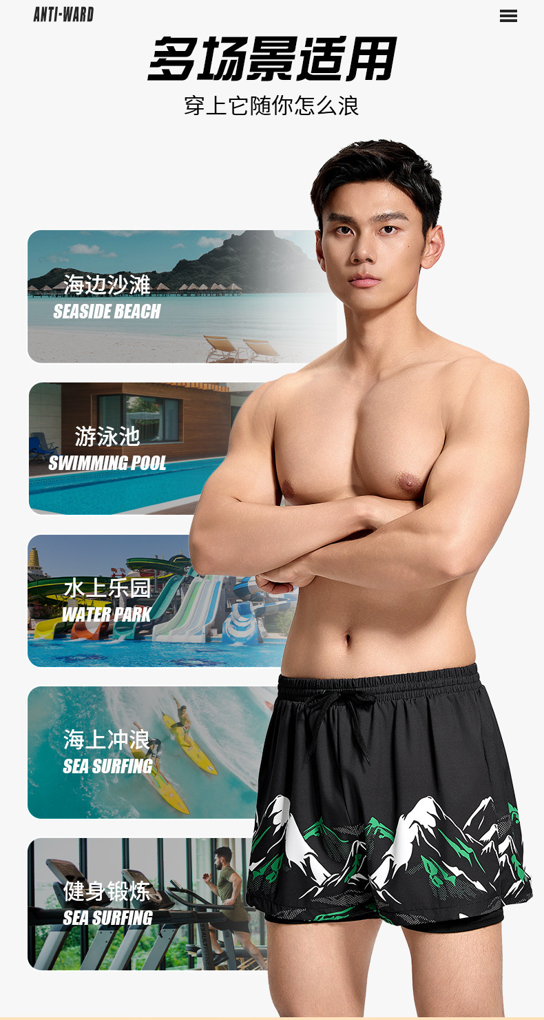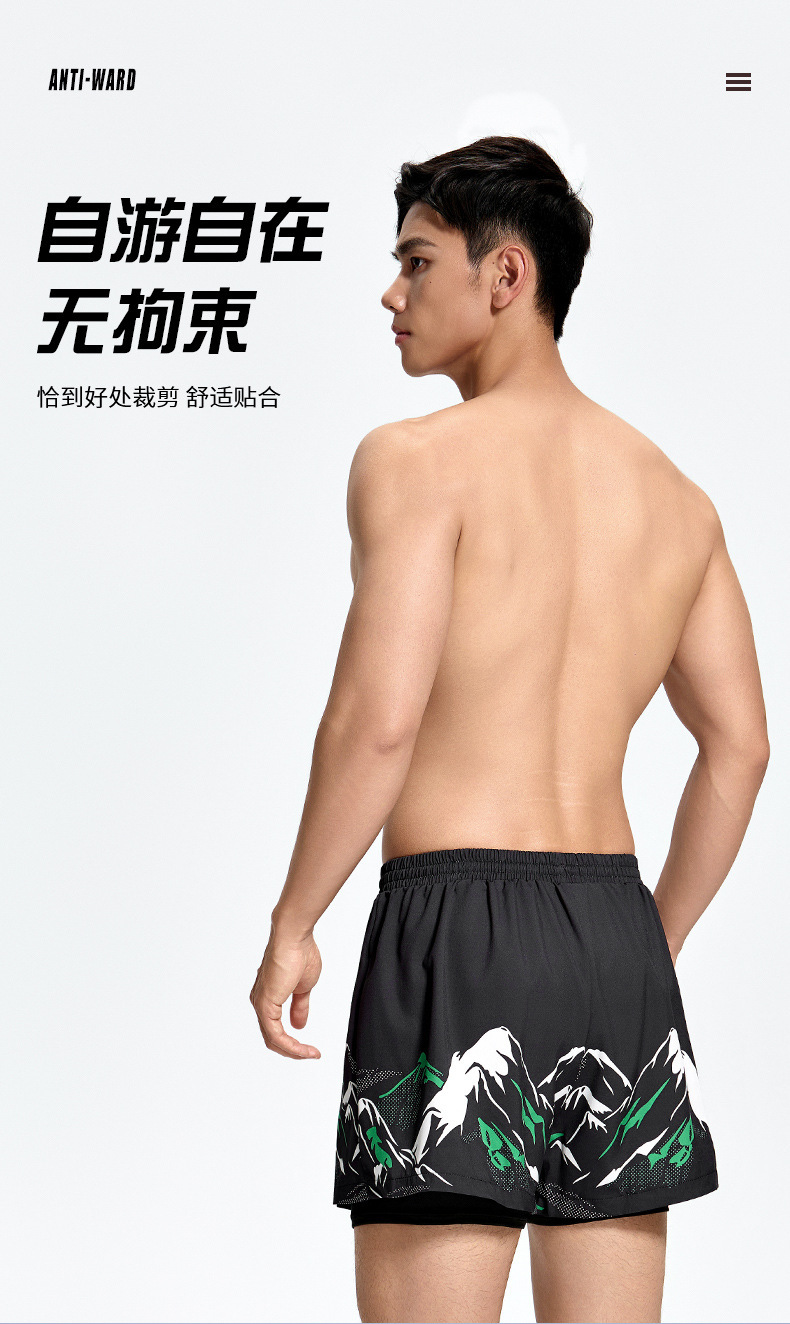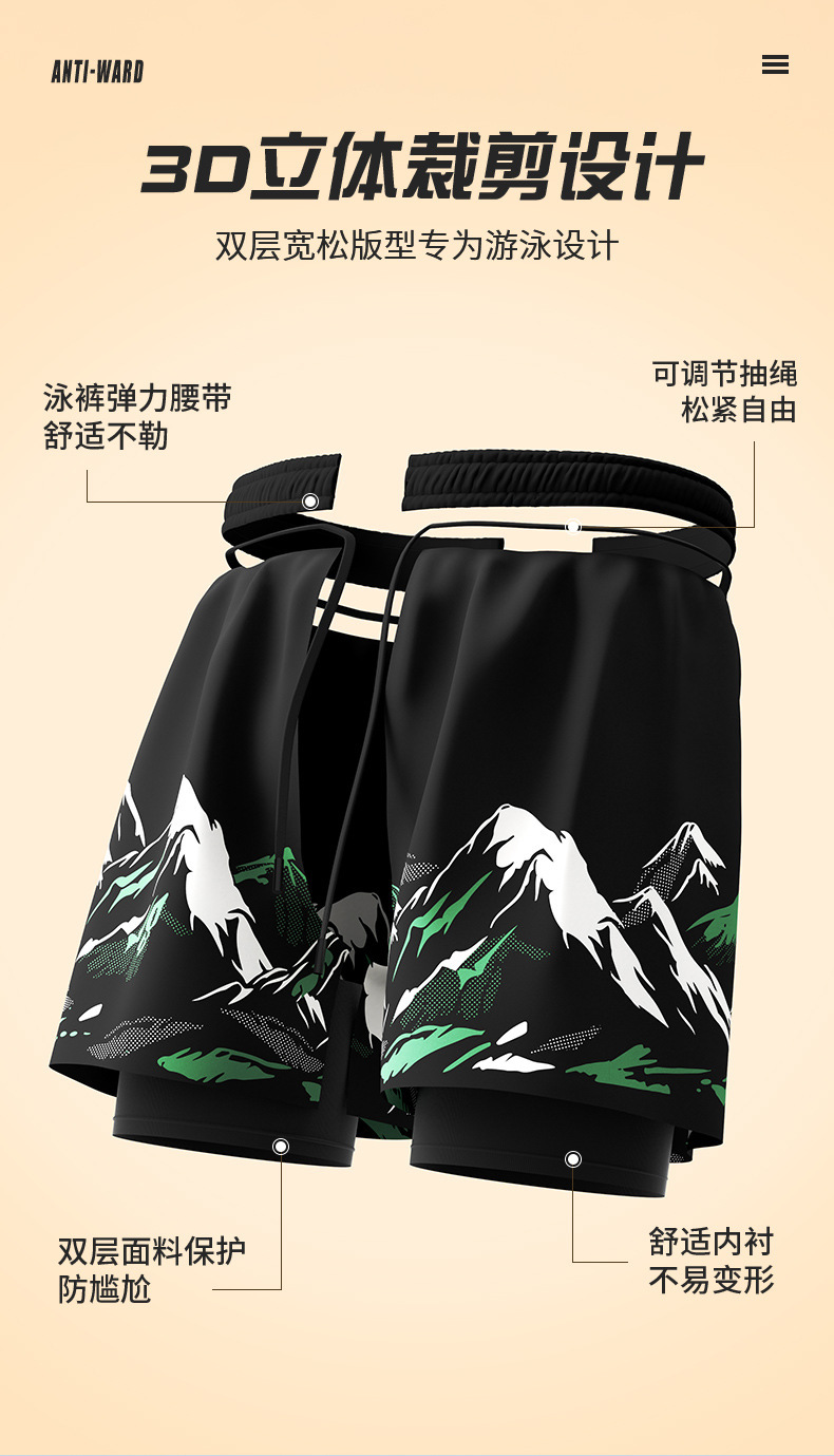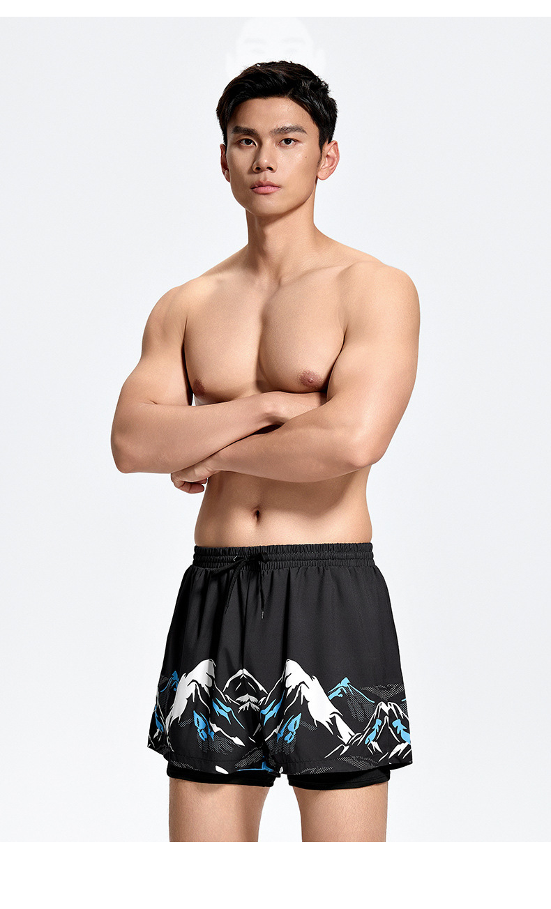 남성용 수영 바지 2025 새로운 스타일 흡수성 속건성 당황 방지 더블 레이어 느슨한 대형 남성용 수영 장비 수영복스토어 가기