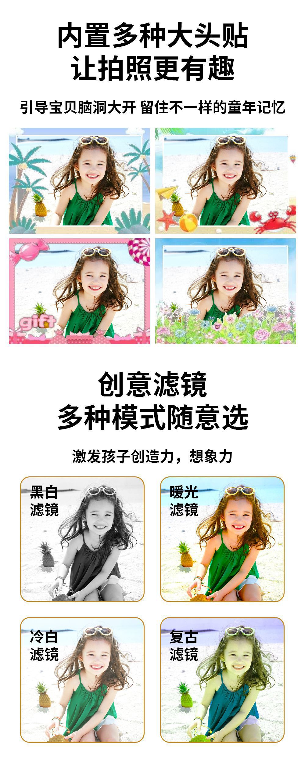 28个卡通相框、6个照片滤镜和5个镜像效果
