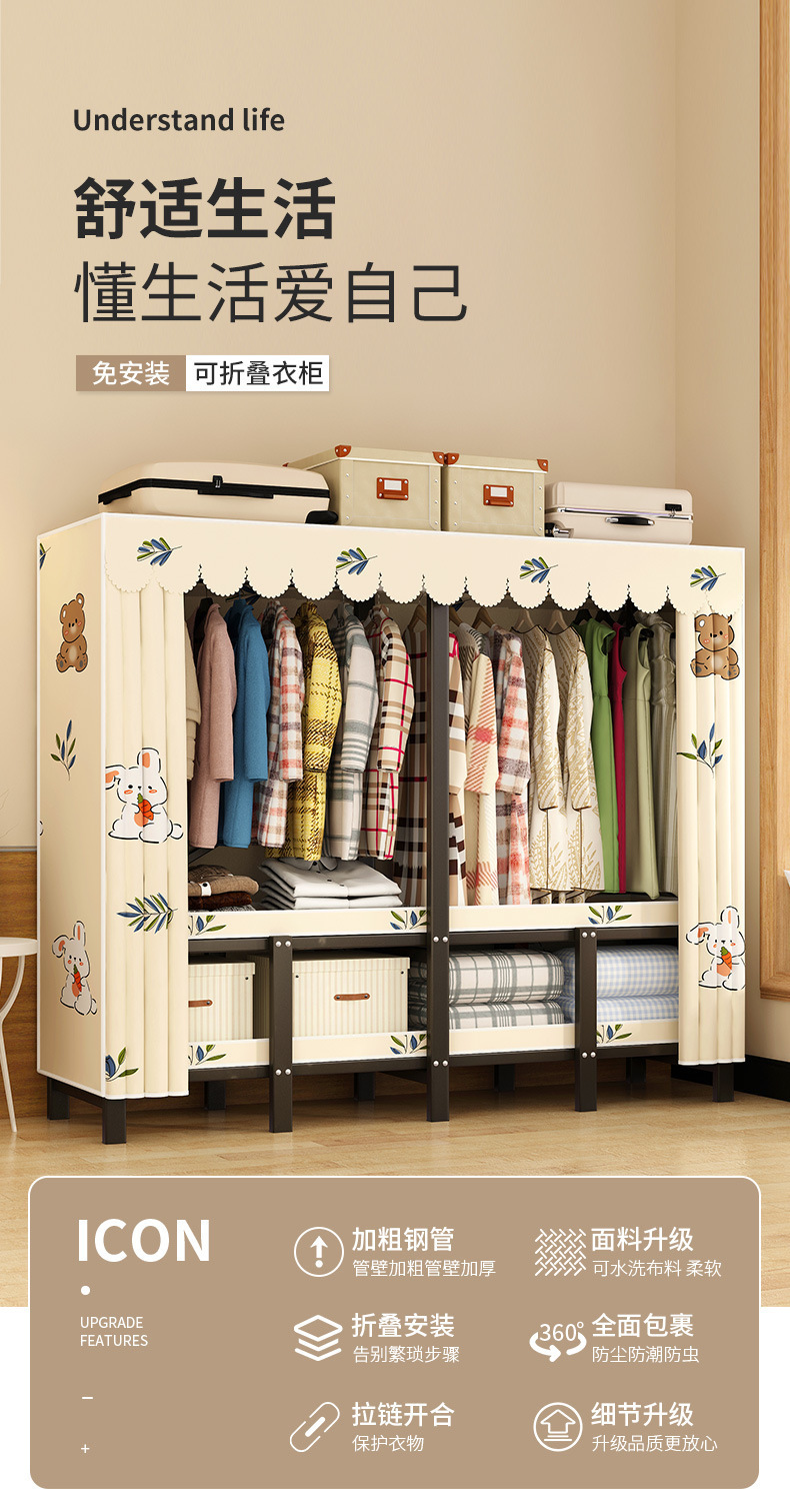설치가 필요 없는 입체 옷장, 접이식 옷장, 가정용 침실, 튼튼하고 내구성이 뛰어난 천 옷장, 임대실, 간이 옷장