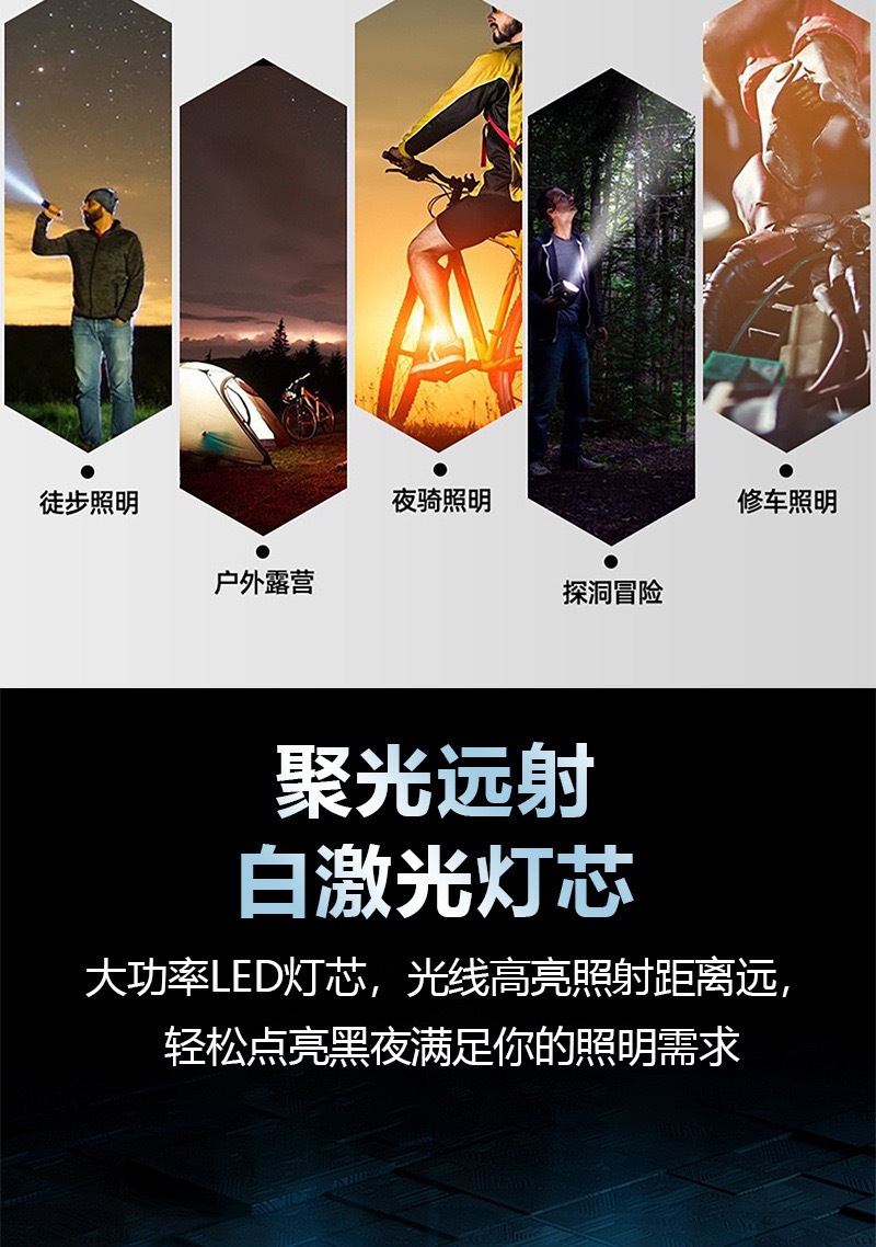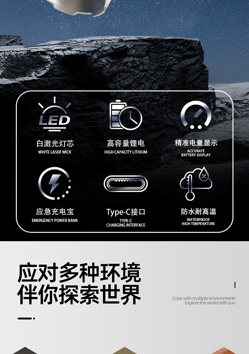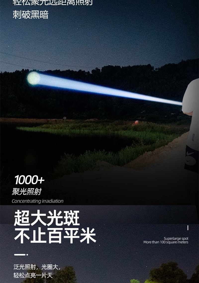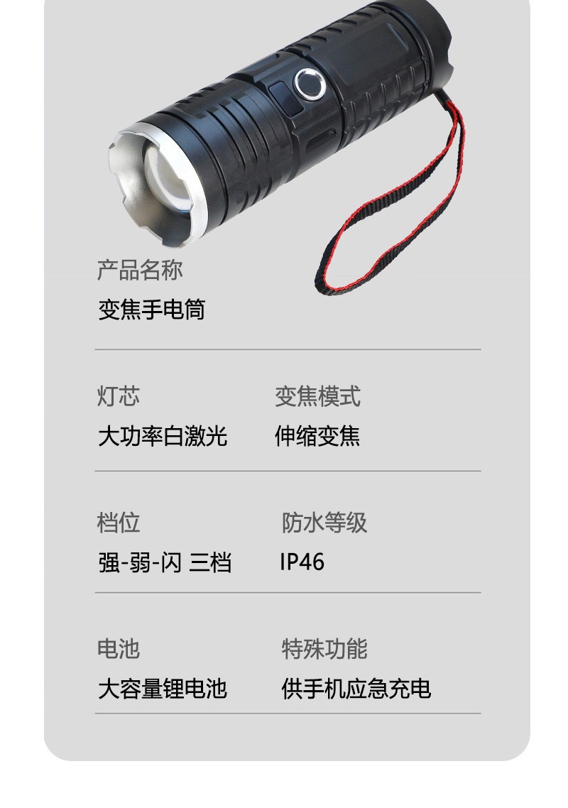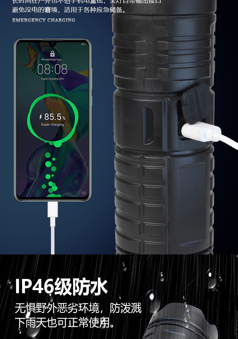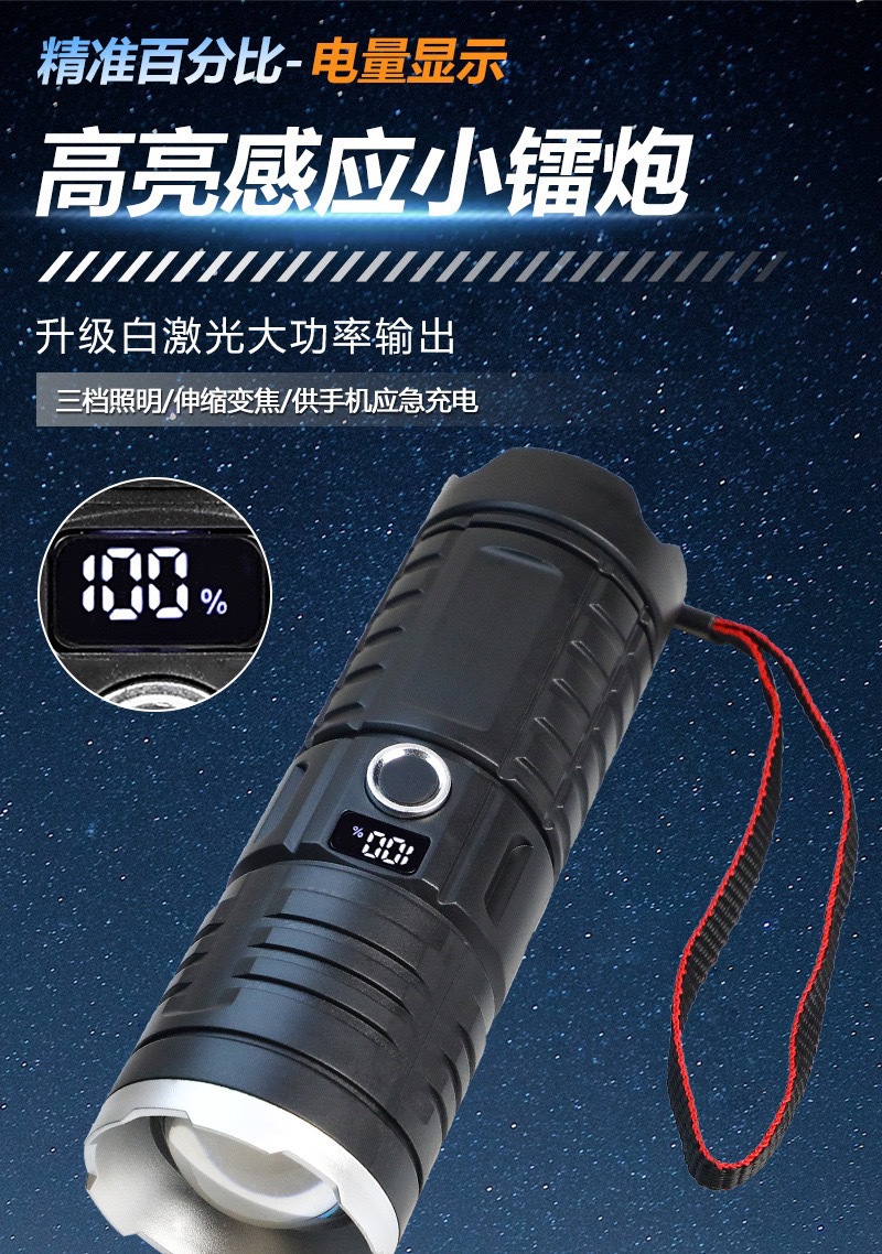 • 【F-916B】전기 디스플레이 강력한 손전등 + Type-c 고속 충전