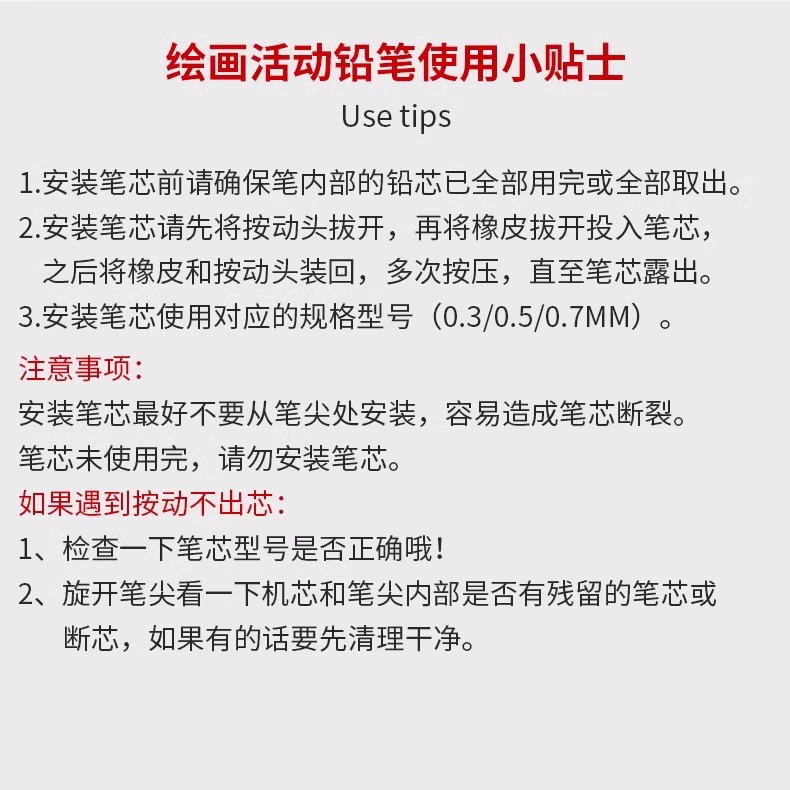 • 0.5mm 자동 연필 + 연필심 + 지우개 3개입 1세트