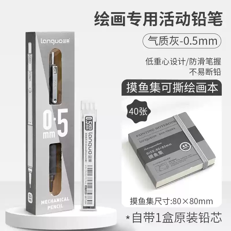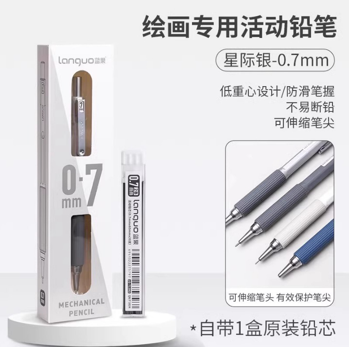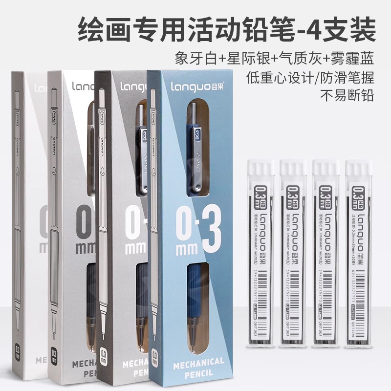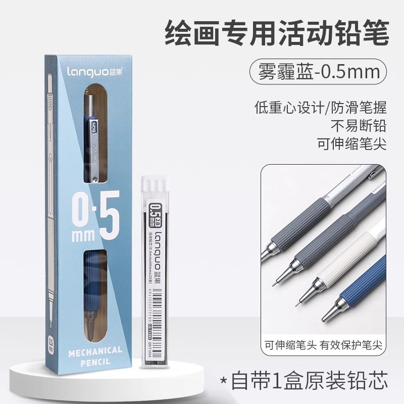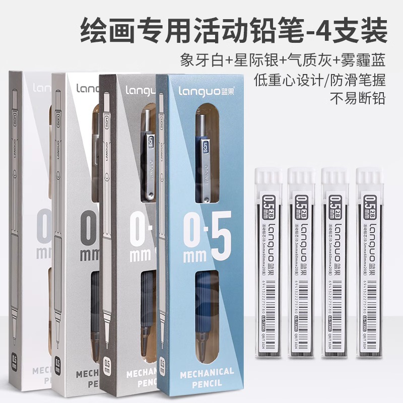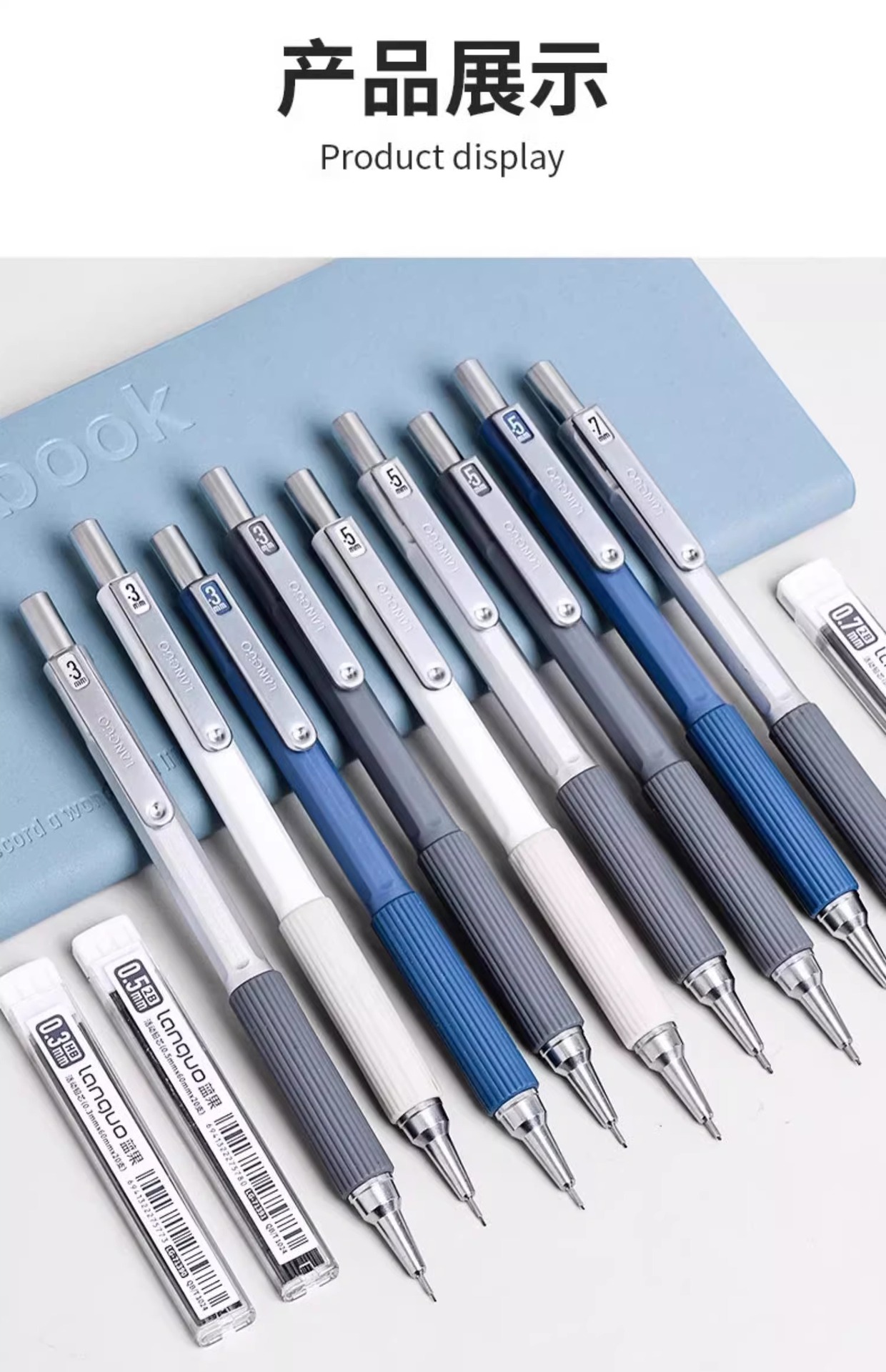 Languo 자동 연필 05 저중심 금속 학생 자동 펜 문구 연속 코어 그림 쓰기 활동 연필