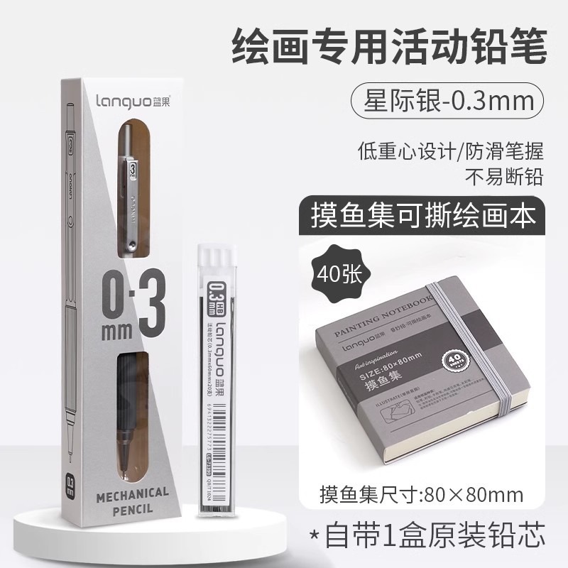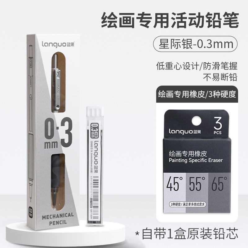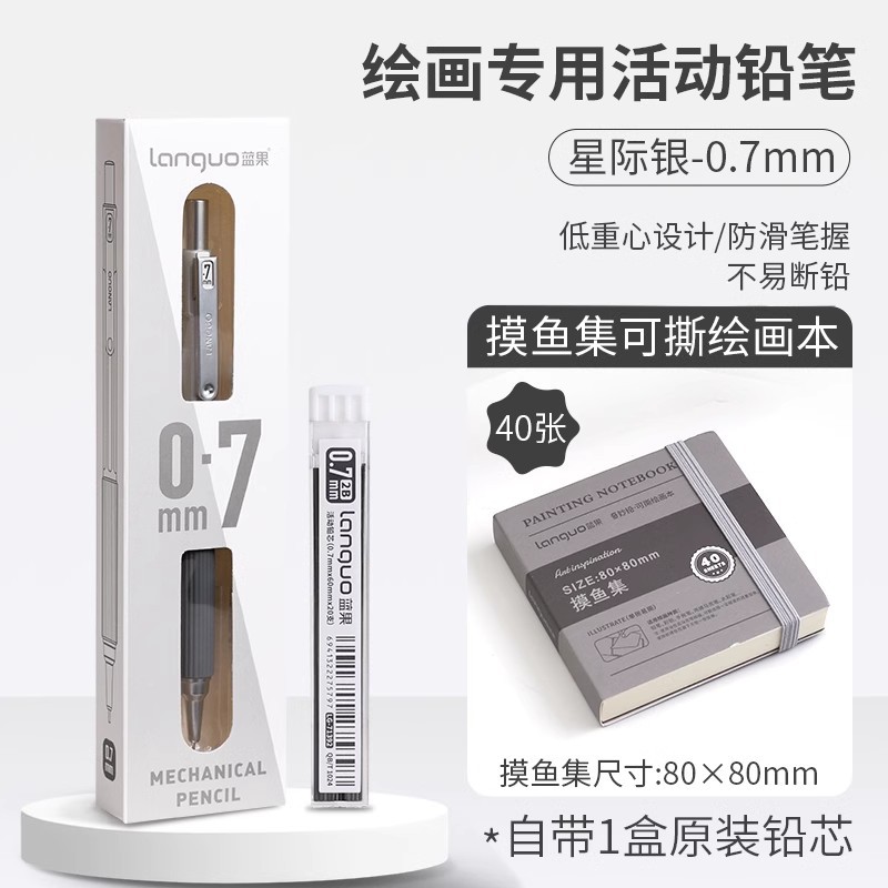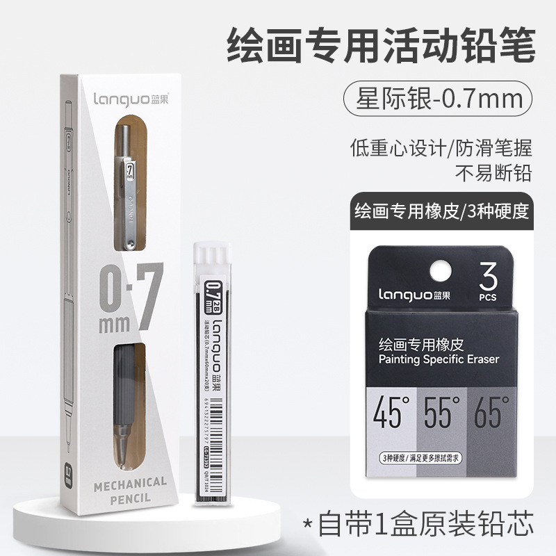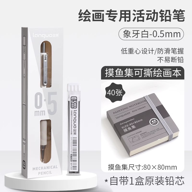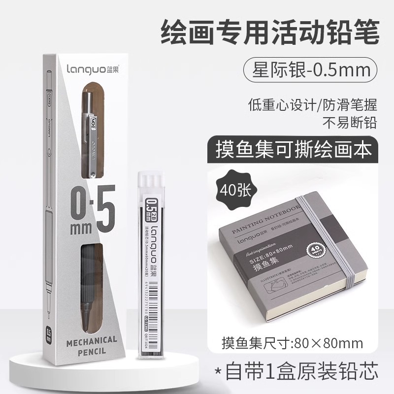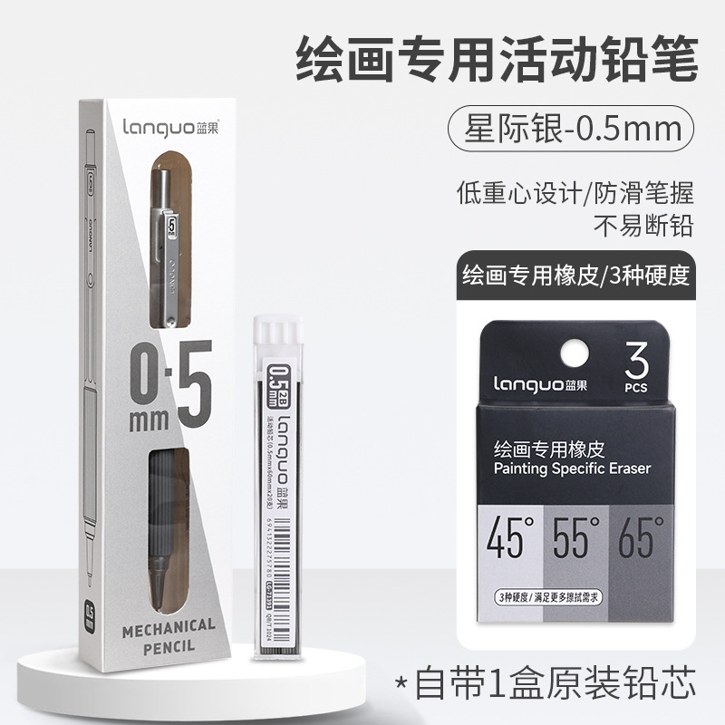 Languo 자동 연필 05 저중심 금속 학생 자동 펜 문구 연속 코어 그림 쓰기 활동 연필