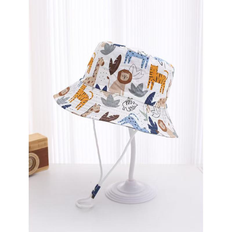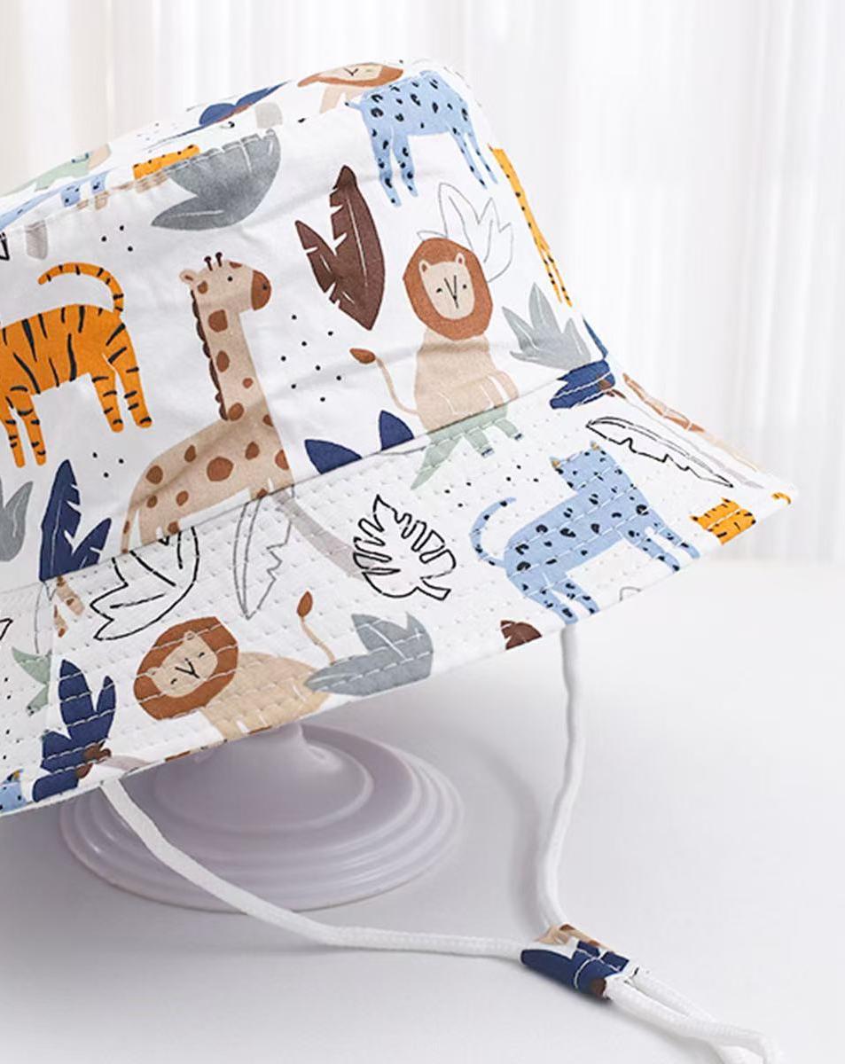 2025 국경 간 어린이 만화 동물 분지 모자 여름 해변 순수 코튼 어부 모자 남성과 여성 아기 귀여운 야외