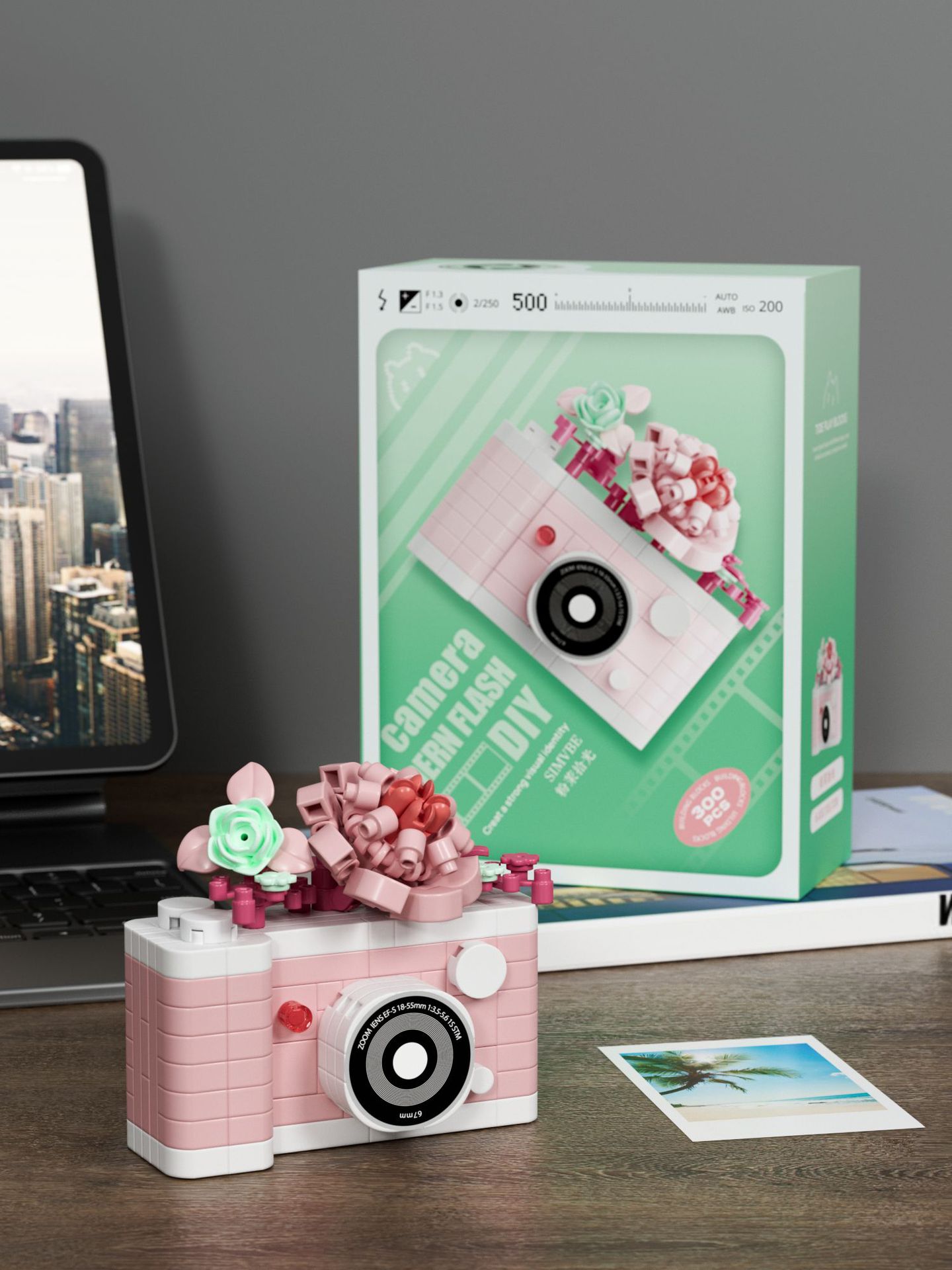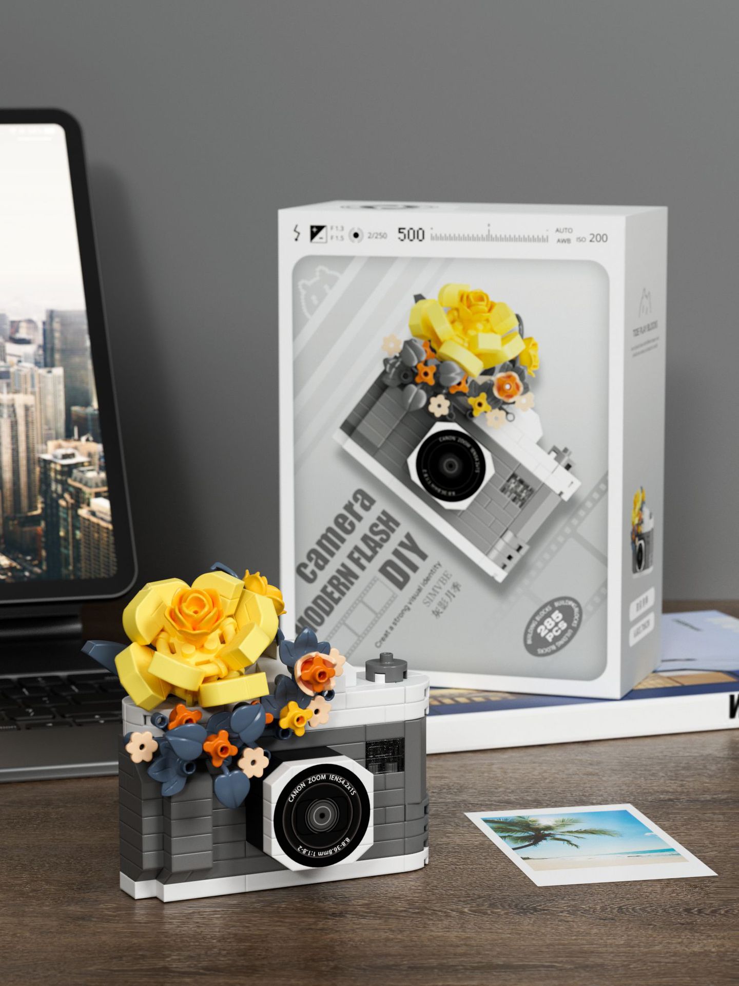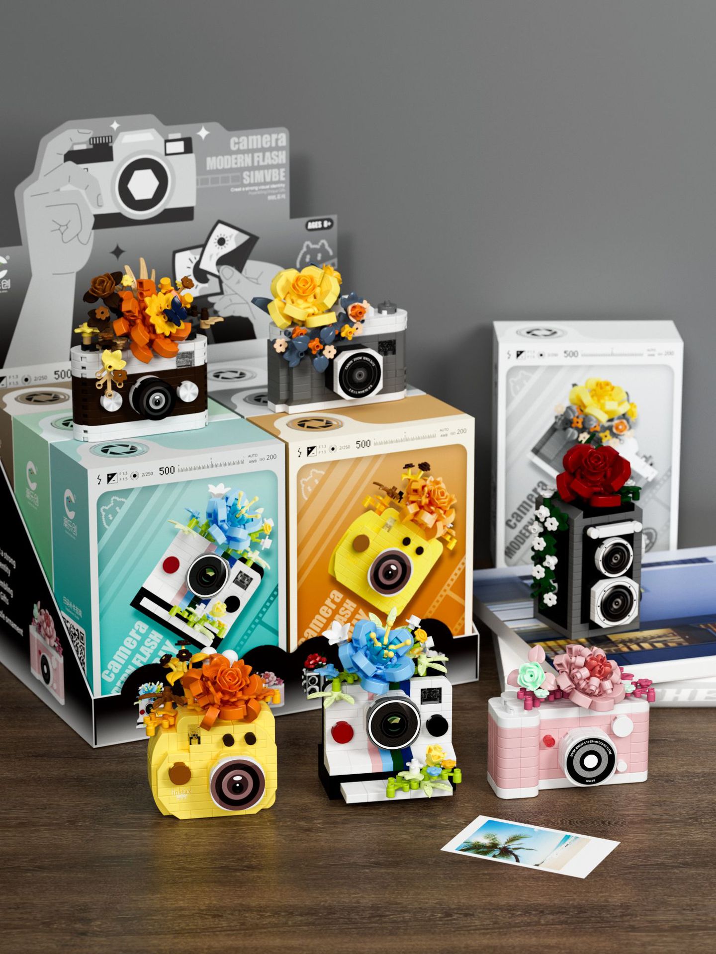 Chaolechuang 7438-7443 시리즈 거울 꽃 카메라 마이크로 입자 빌딩 블록 조립 장난감 장식품 생일 선물스토어 가기