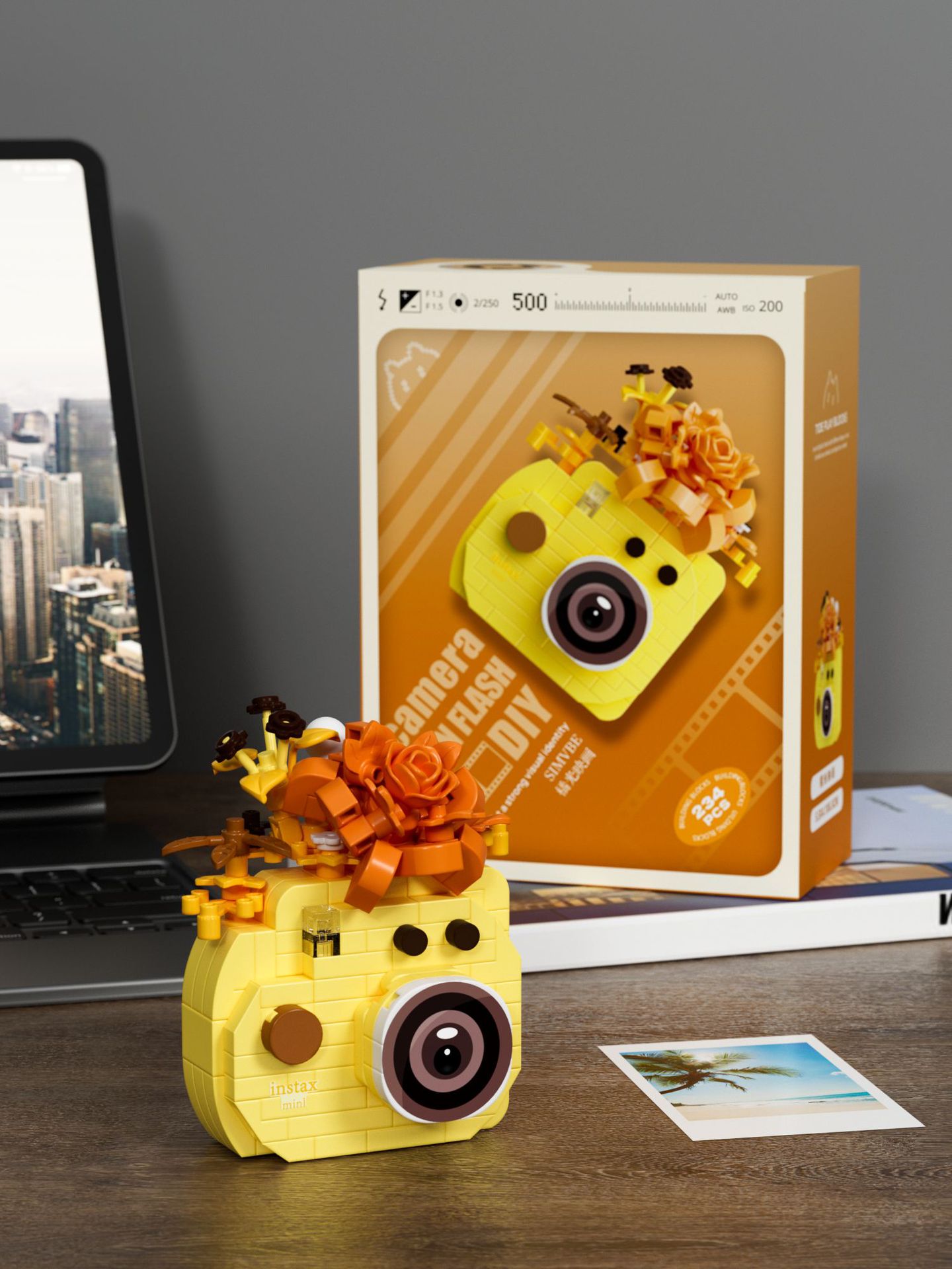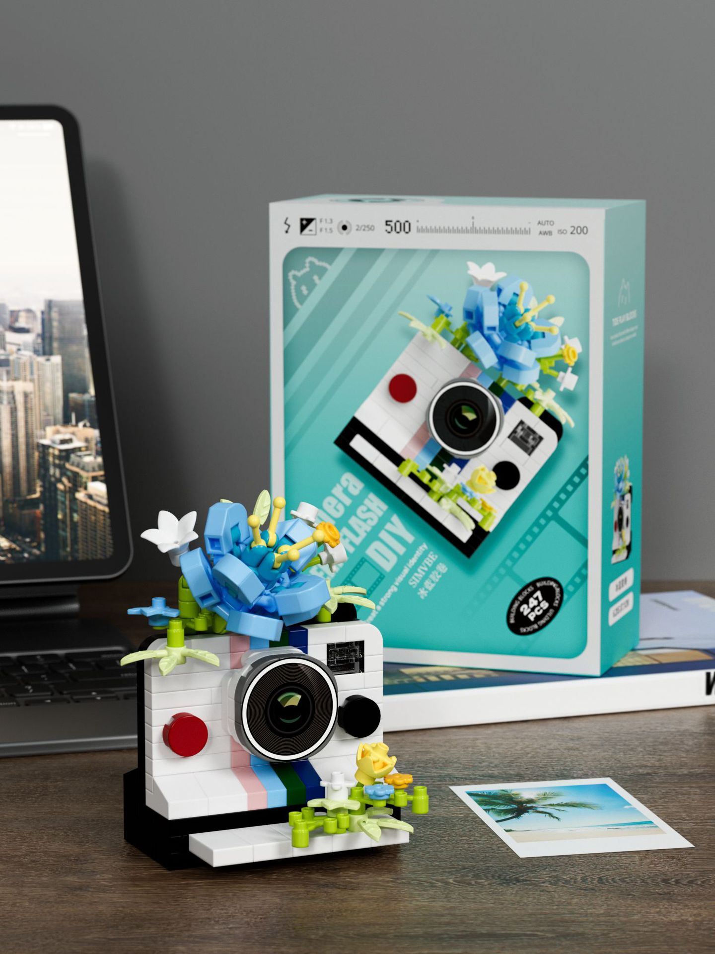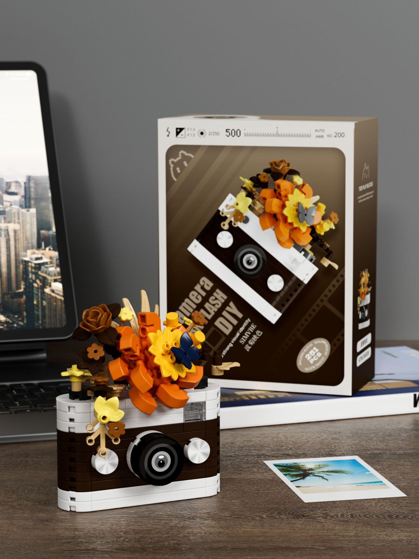 Chaolechuang 7438-7443 시리즈 거울 꽃 카메라 마이크로 입자 빌딩 블록 조립 장난감 장식품 생일 선물스토어 가기