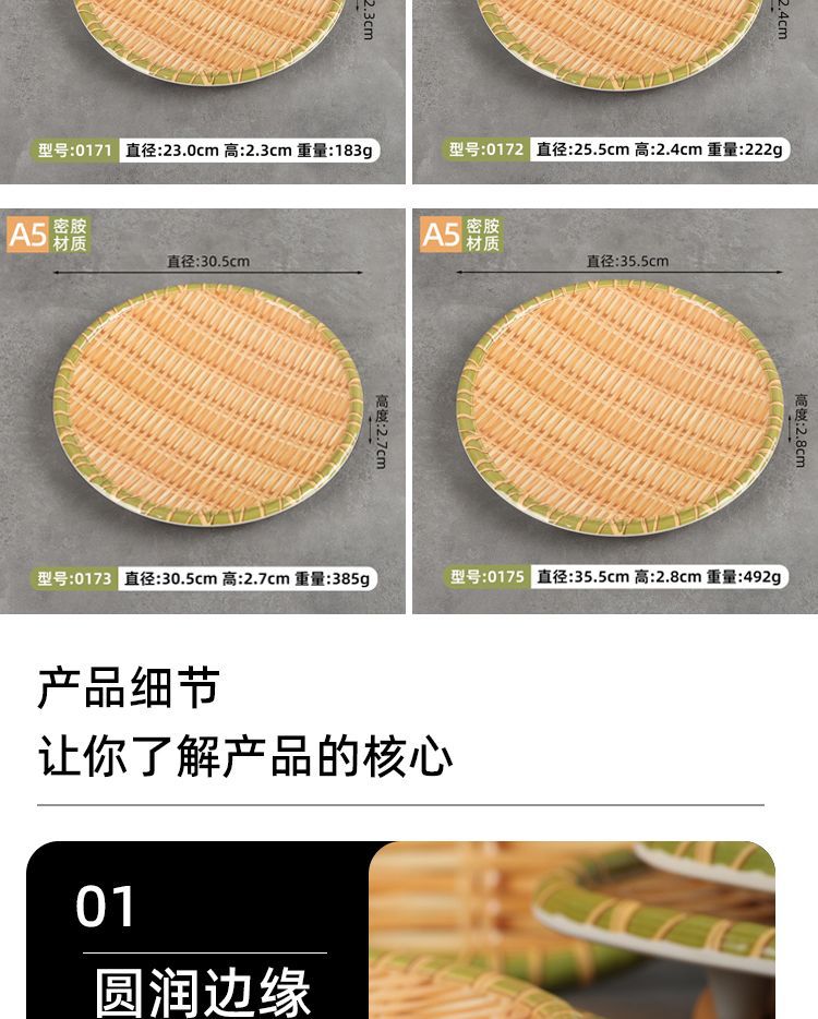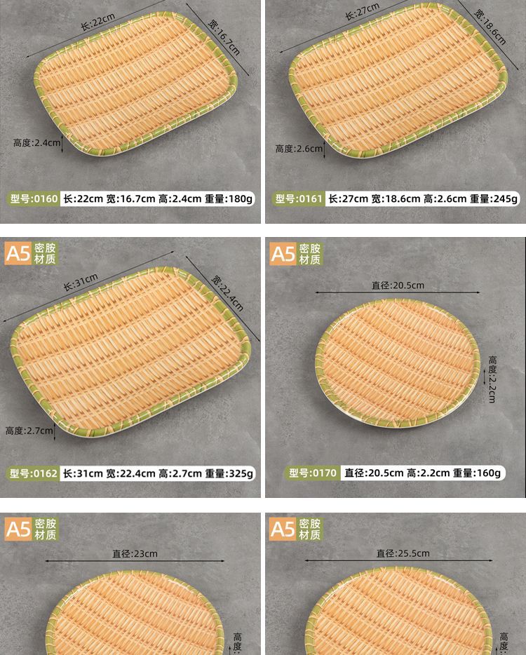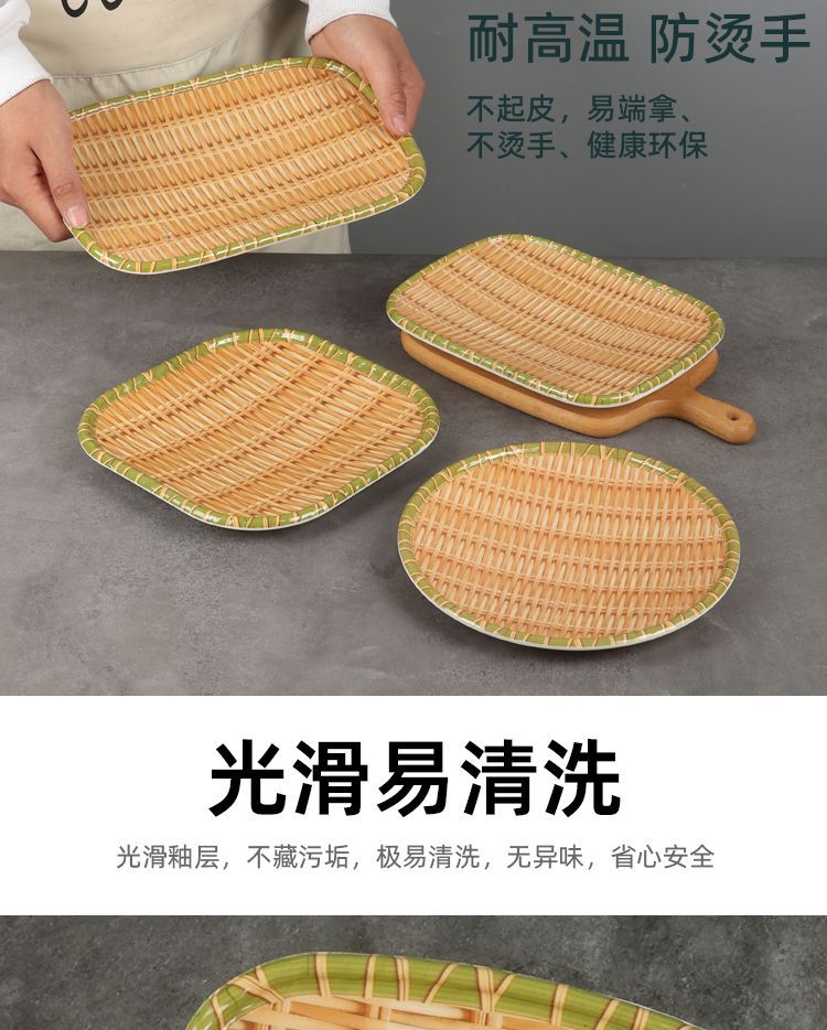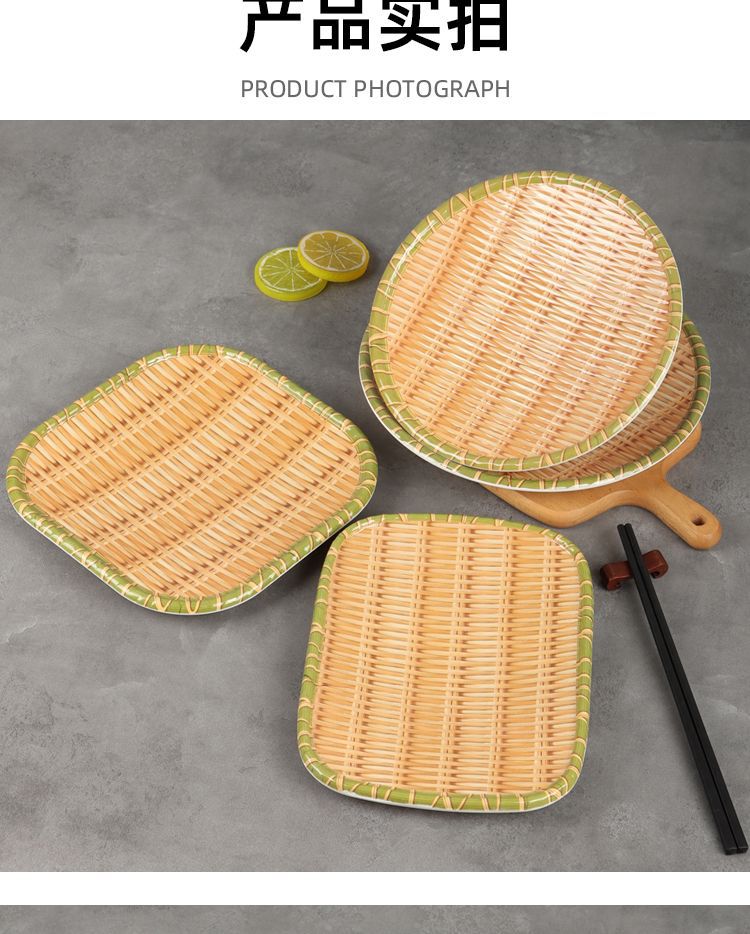 모조 대나무 멜라민 접시, 바베큐 접시, 콘크리트 직조 접시 트레이, 인터넷 연예인 디저트 접시, 상업용 창작 스낵 접시스토어 가기