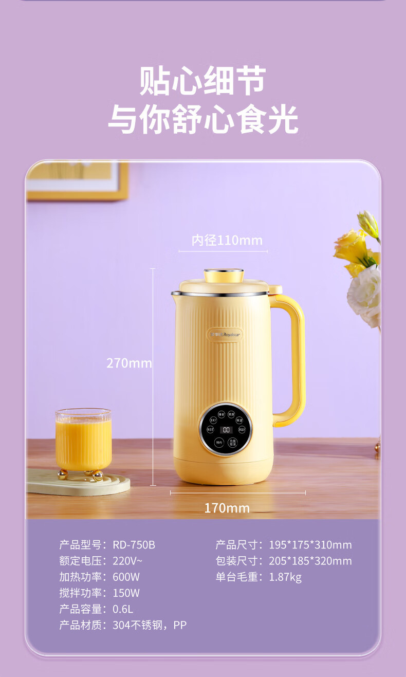 라이트 사운드 벽 파괴기 두유 기계 가열 다기능 완전 자동 잔류물 없음 필터 프리 식품 보충 기계 RD-750B스토어 가기
