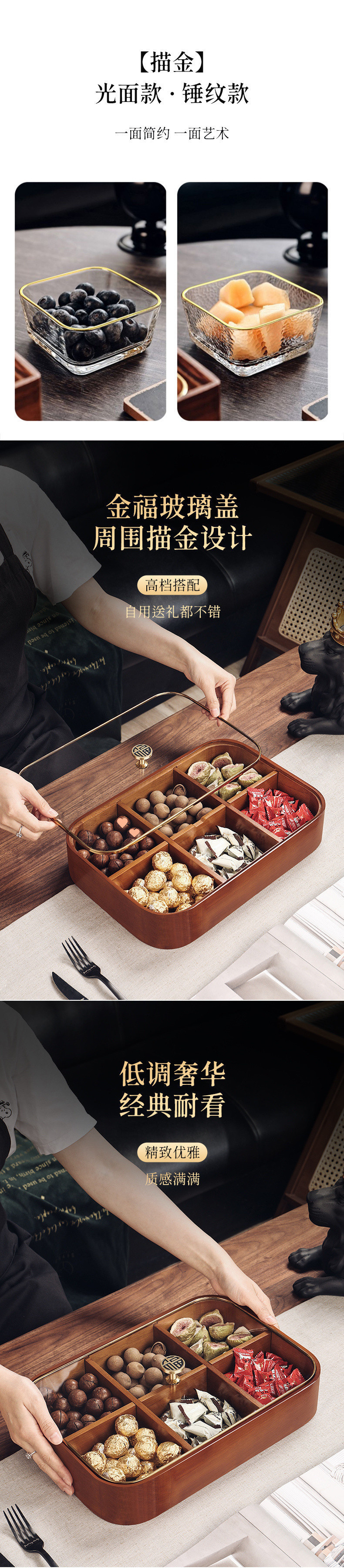 • 6칸 이중 과일 상자 + 금테 광택 사각 그릇 6개