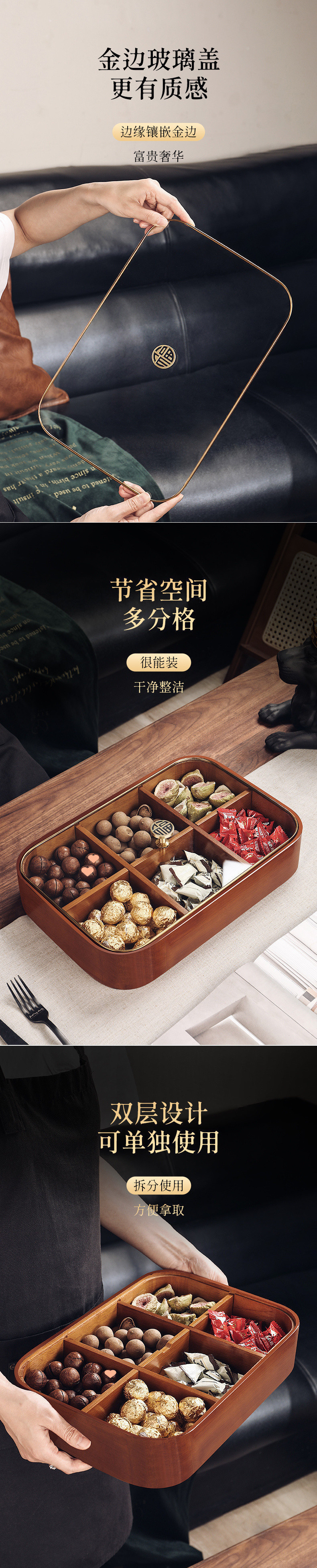 새로운 중국 스타일 단단한 나무 거실 가정용 말린 과일 보관 상자 멜론 씨앗 사탕 커피 테이블 견과류 스낵 디스플레이 차 과일 접시