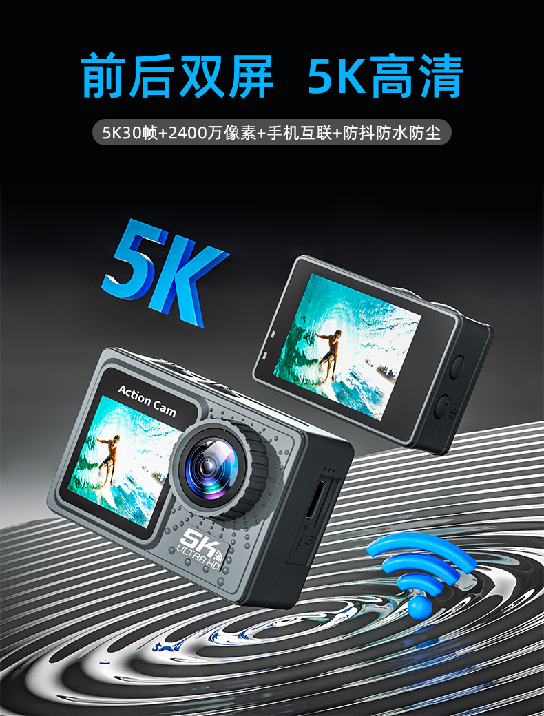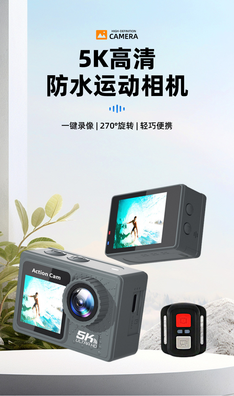 야외 방수 스포츠 카메라 5K HD 손떨림 방지 원격 제어 듀얼 스크린 카메라 미니 스포츠 카메라 공장 재고 있음스토어 가기
