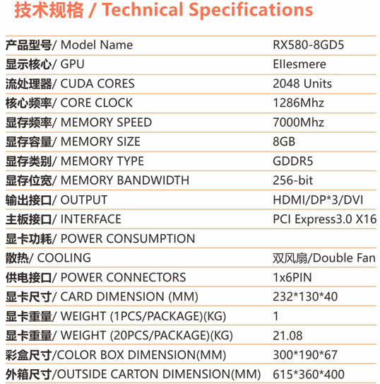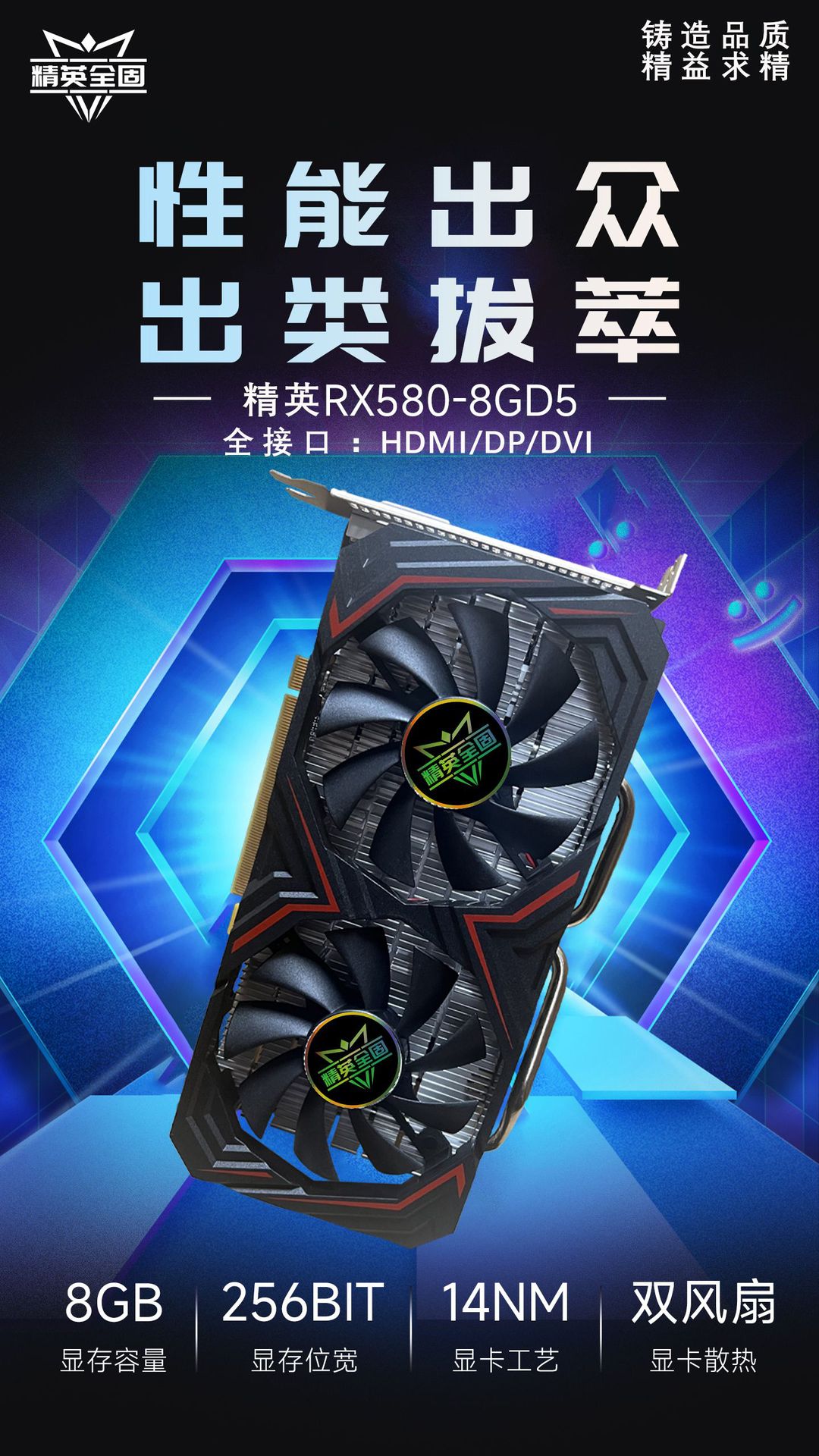 엘리트 풀 솔리드 화이트 RX580 8G DDR5 데스크탑 컴퓨터 비즈니스 오피스 게임 독립 그래픽 카드스토어 가기