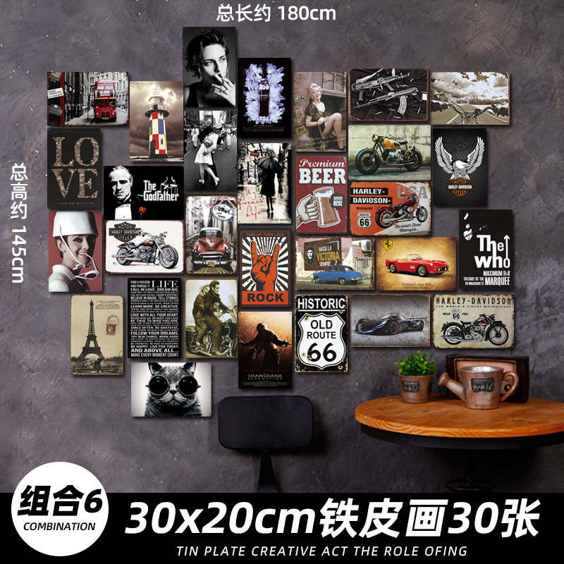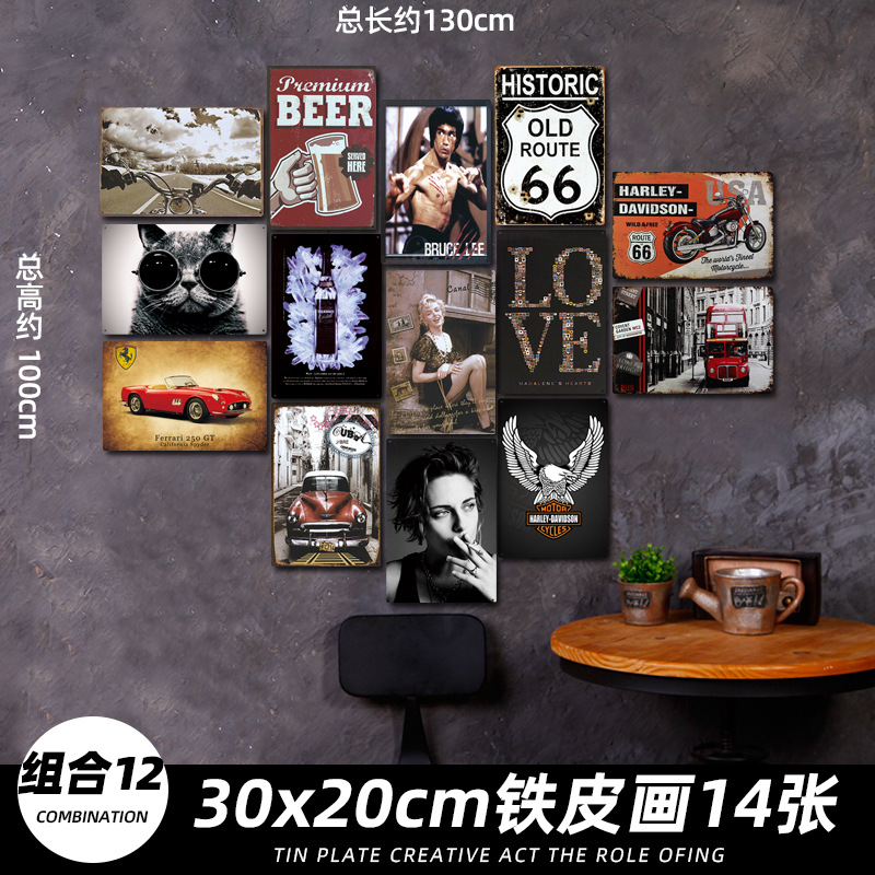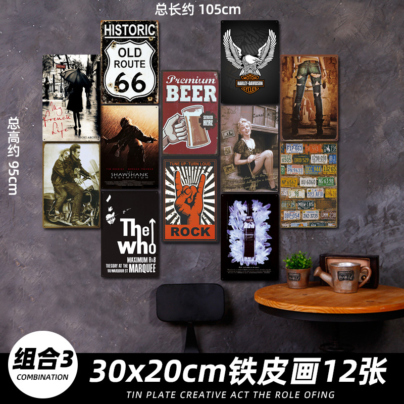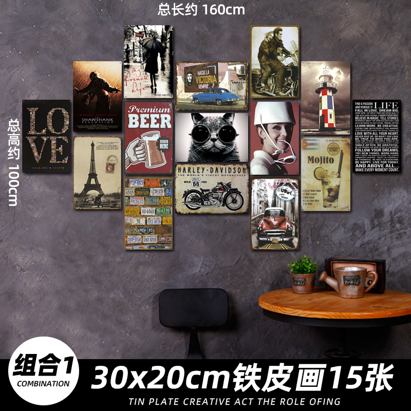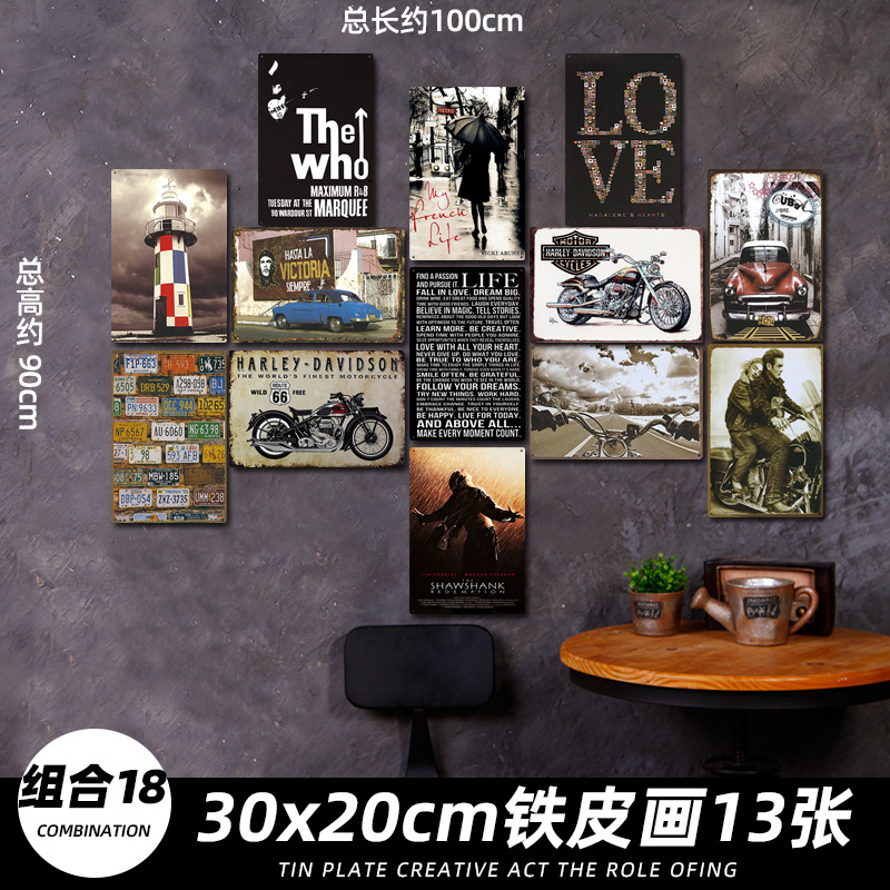 산업 스타일 복고풍 향수 철판 그림 번호판 바 이발소 침실 벽 장식 펜던트 벽걸이 그림 크리 에이 티브