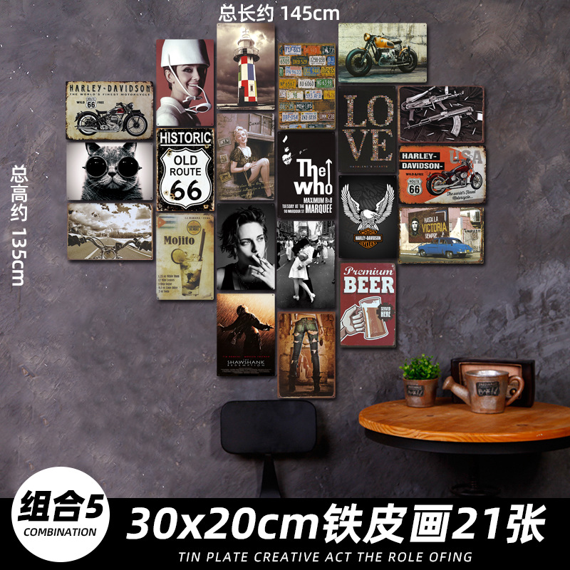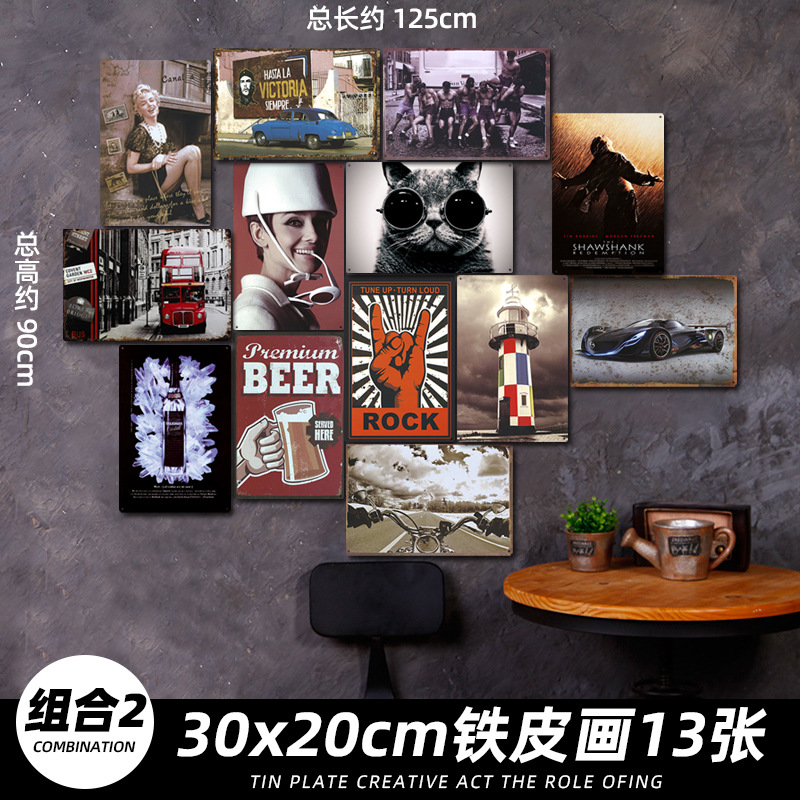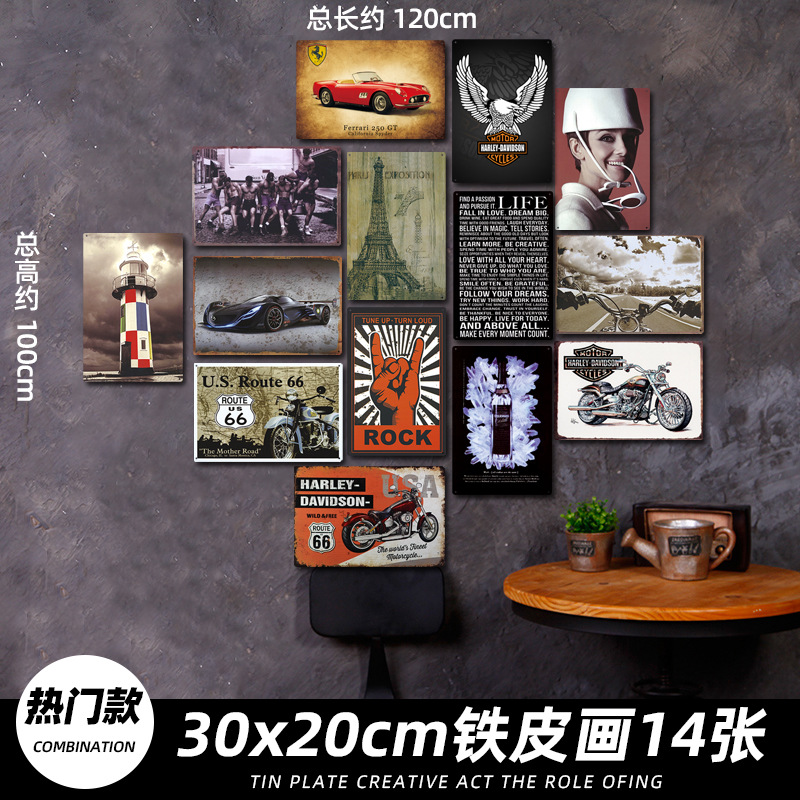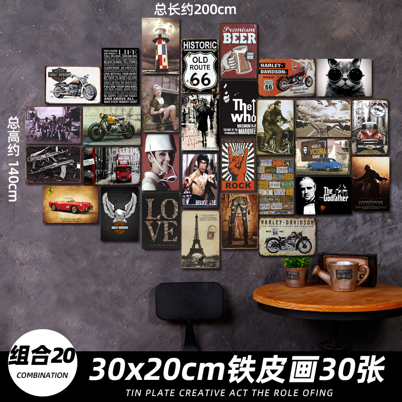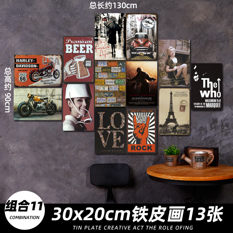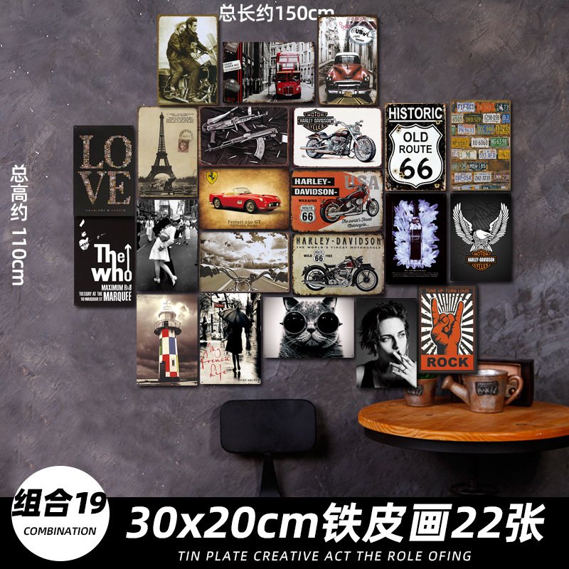 산업 스타일 복고풍 향수 철판 그림 번호판 바 이발소 침실 벽 장식 펜던트 벽걸이 그림 크리 에이 티브