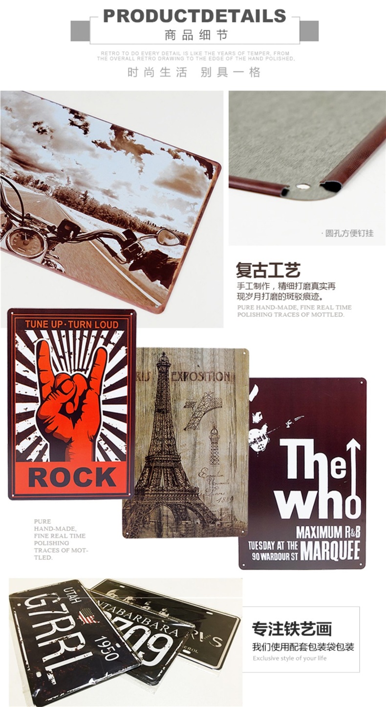 산업 스타일 복고풍 향수 철판 그림 번호판 바 이발소 침실 벽 장식 펜던트 벽걸이 그림 크리 에이 티브스토어 가기