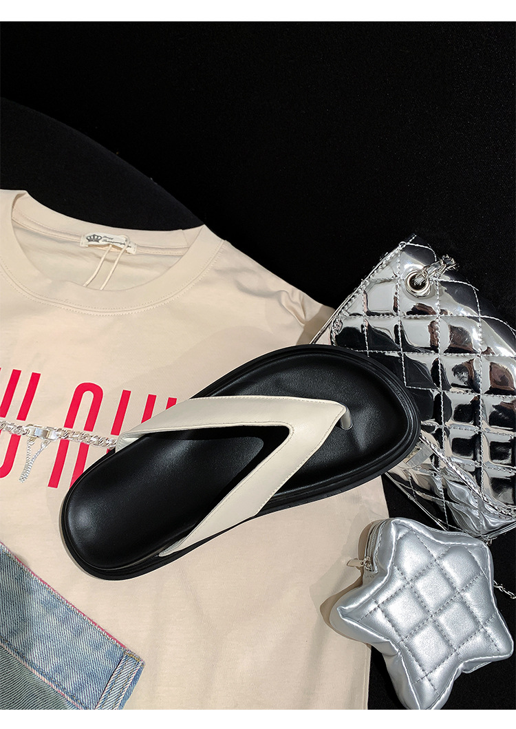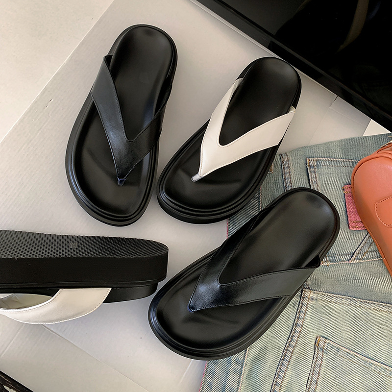 2024 여름 새로운 캐주얼 다목적 라운드 발가락 두꺼운 밑창 간단한 플립 플롭 여성 여름 겉옷