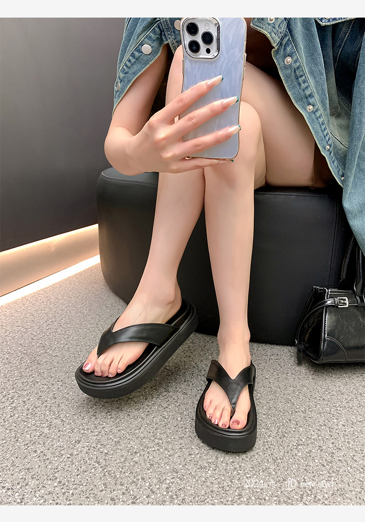 2024 여름 새로운 캐주얼 다목적 라운드 발가락 두꺼운 밑창 간단한 플립 플롭 여성 여름 겉옷스토어 가기