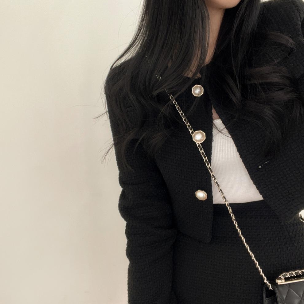 메일라드 솔리드 컬러 스몰 프래그런스 트위드 슈트 여성 2025 짧은 긴팔 탑 하이 웨이스트 스커트 투피스 세트스토어 가기