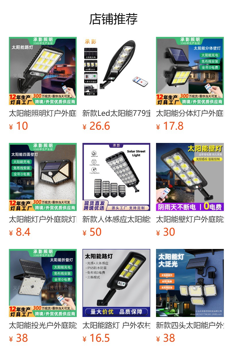 국경을 넘는 태양광 가로등, 실외 일체형 인체 감지 정원등, LED 강광 조명등, 농촌 벽등스토어 가기
