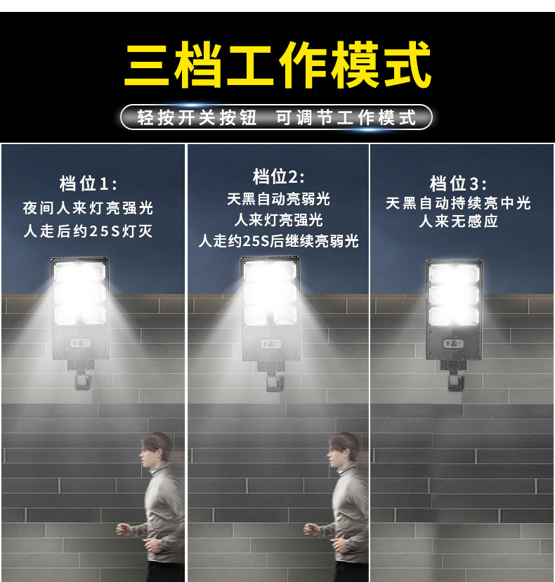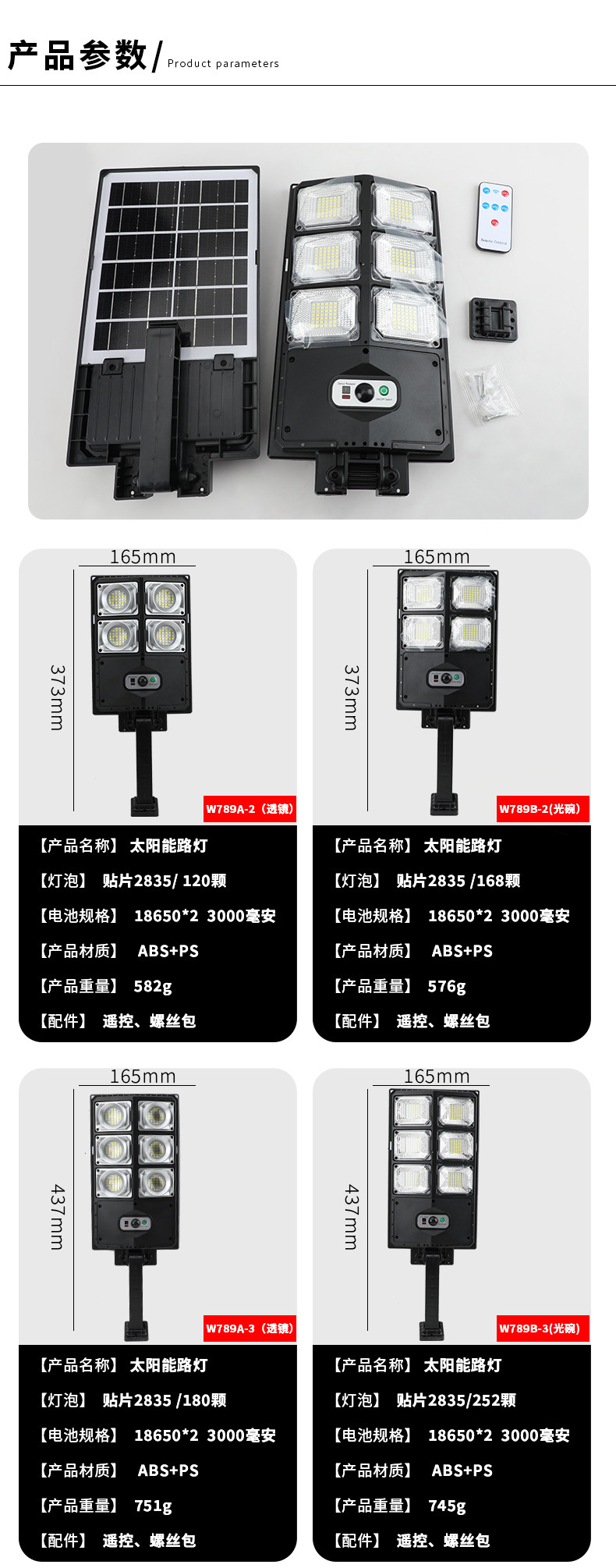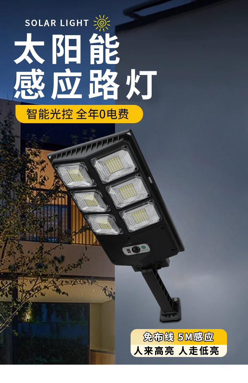 跨境太阳能路灯一体化灯太阳能庭院灯带遥控户外人体感应太阳能灯
