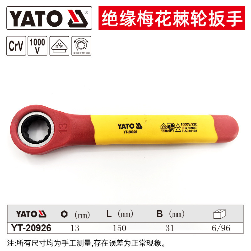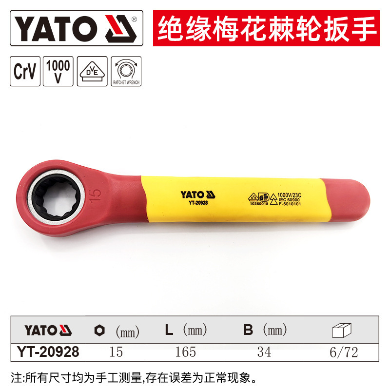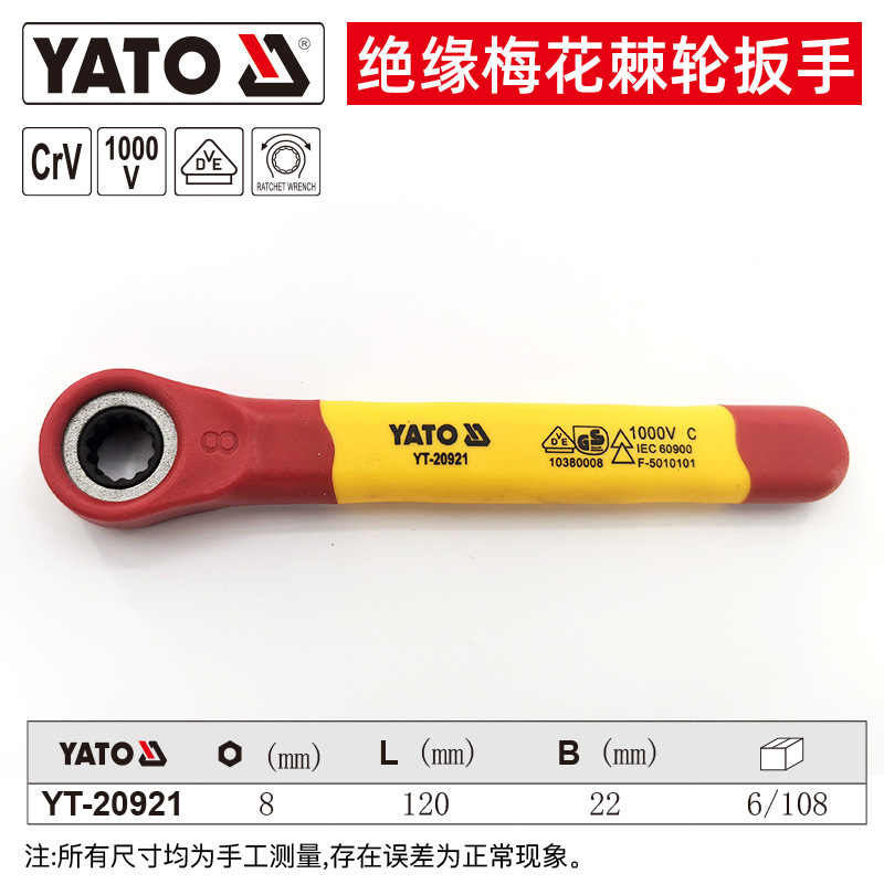 YATO 절연 매화 래칫 렌치 VDE 인증 전압 1000V 전기 기술자용 래칫 렌치스토어 가기