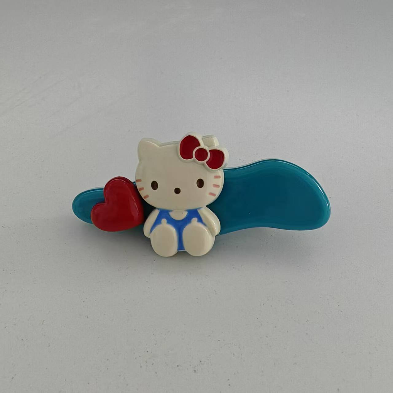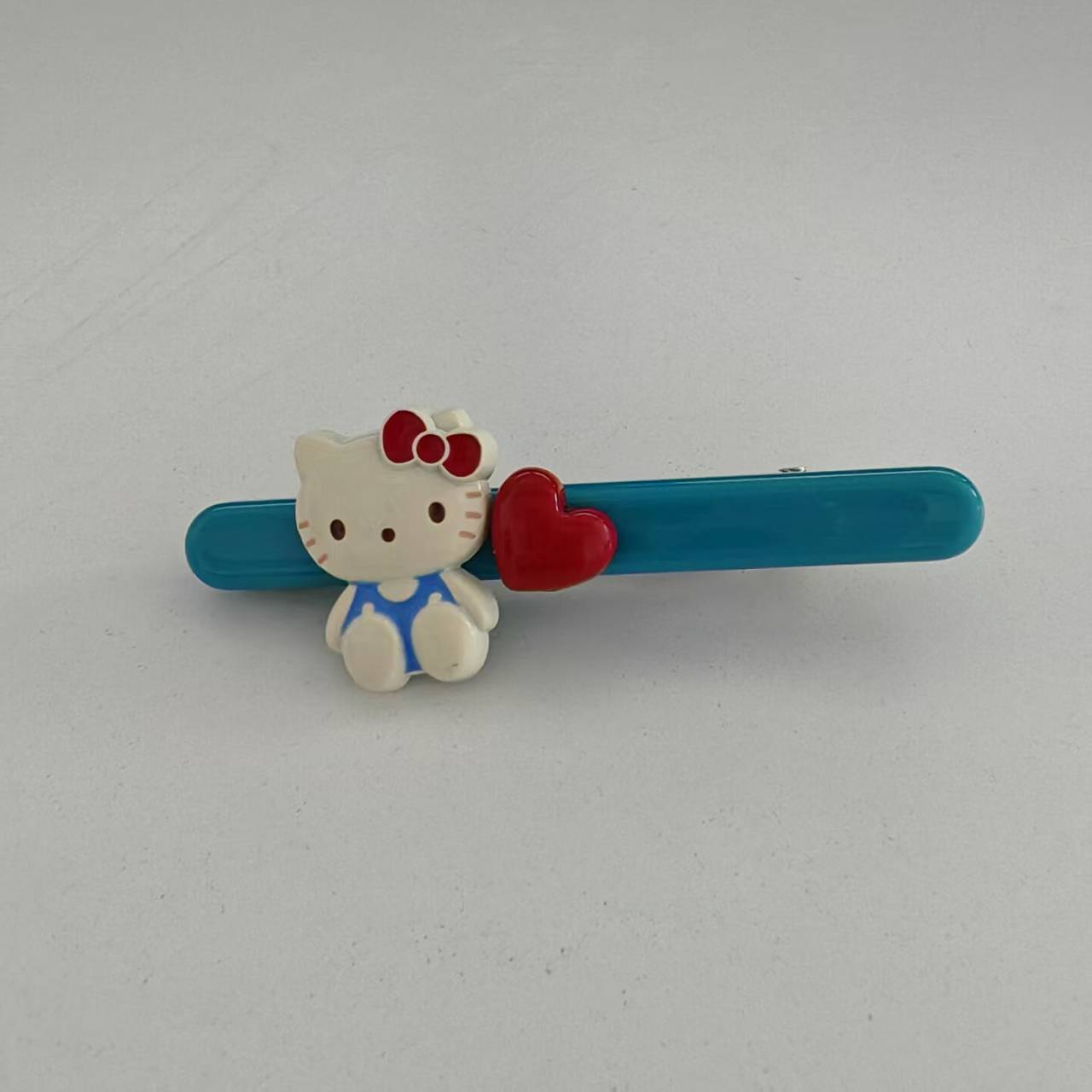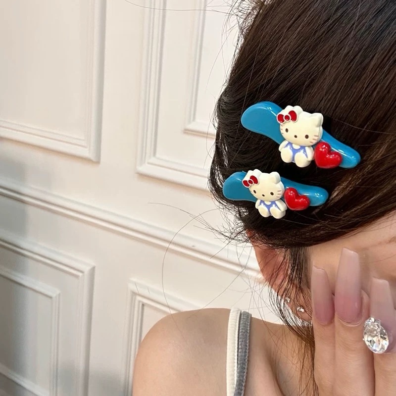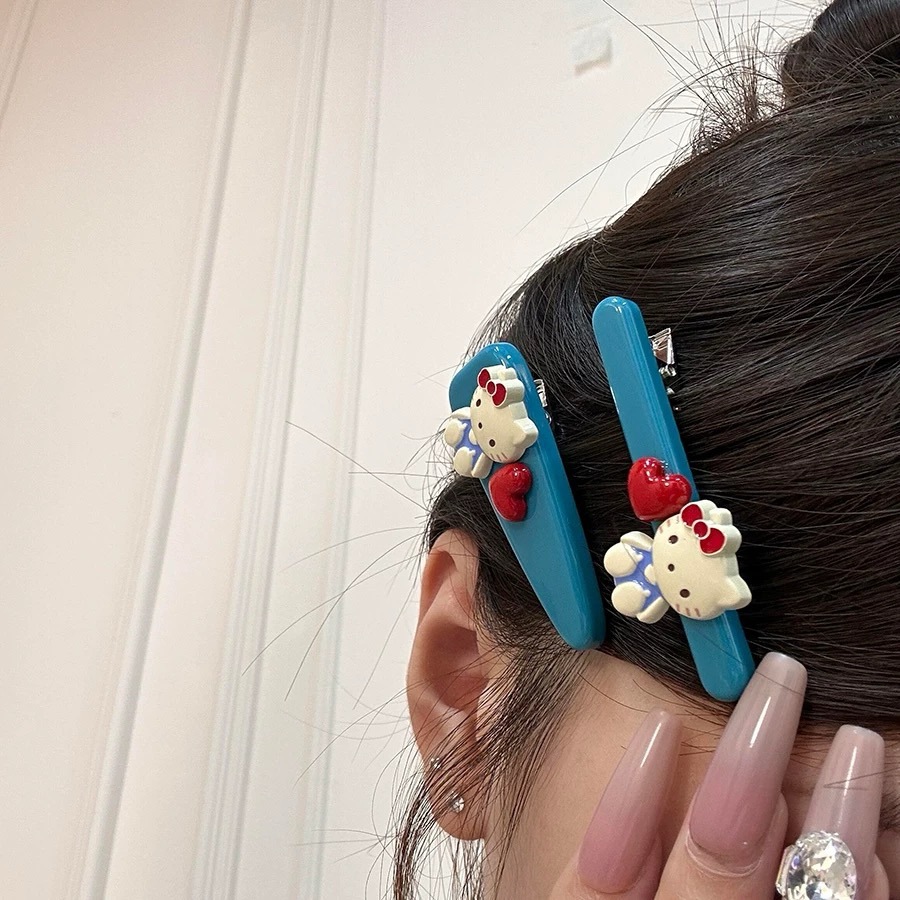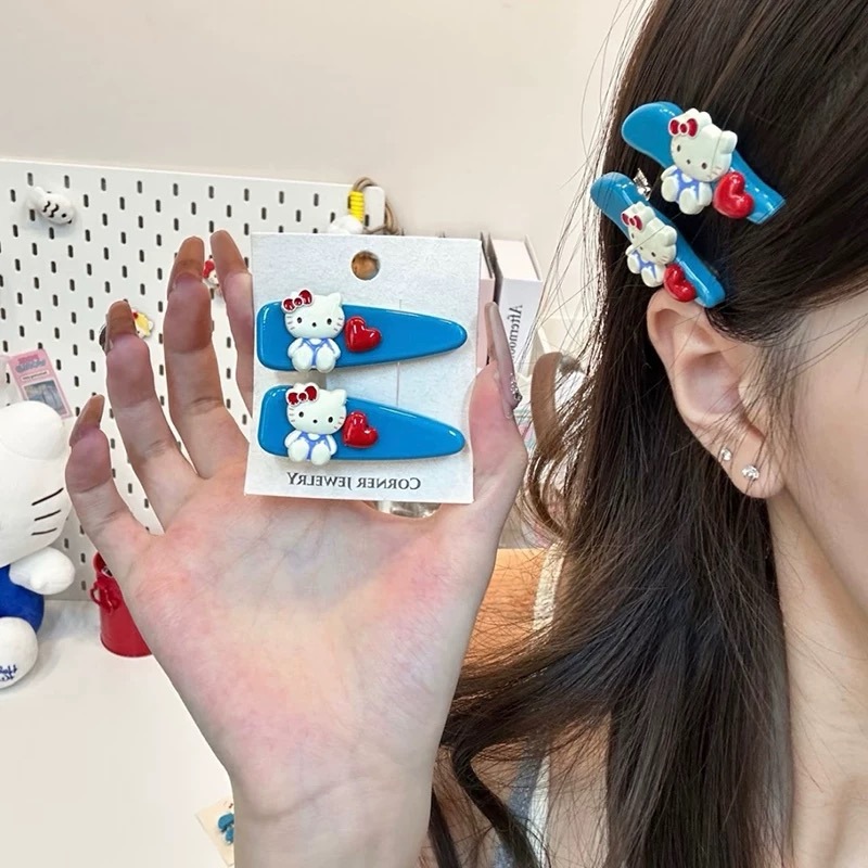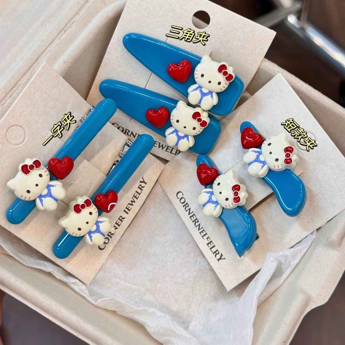한국 귀여운 헬로키티 고양이 사랑 사이드 클립 헤어 액세서리 블루 앞머리 클립 Duckbill 클립 여성용 머리핀스토어 가기