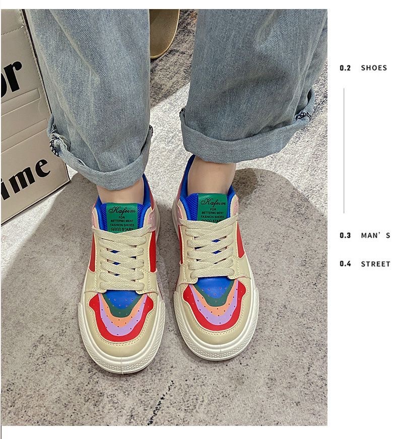 여성용 흰색 신발 유행 2025 봄 새로운 통기성 두꺼운 밑창 플랫폼 신발 ins 학생 한국 스타일 캐주얼 여성 신발스토어 가기