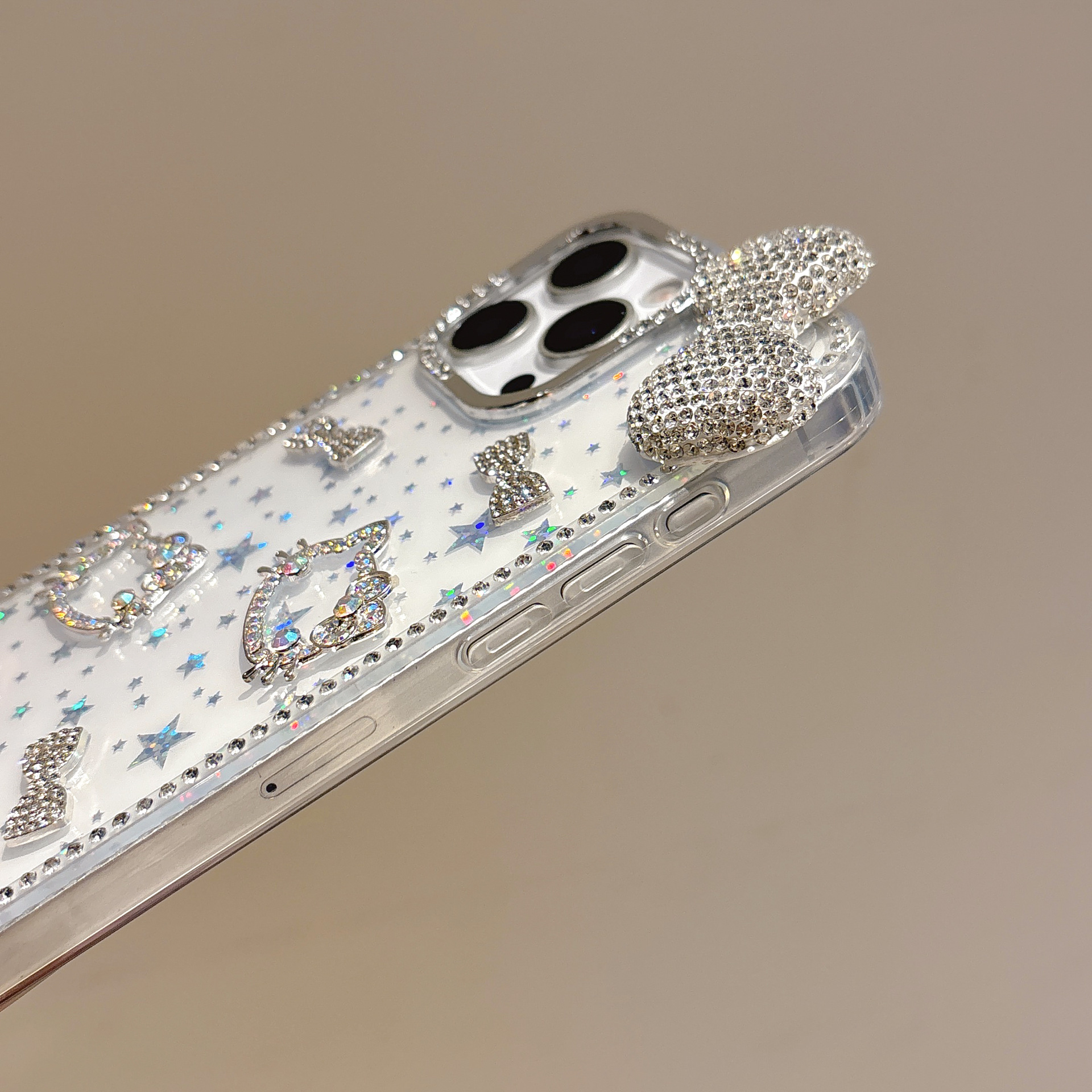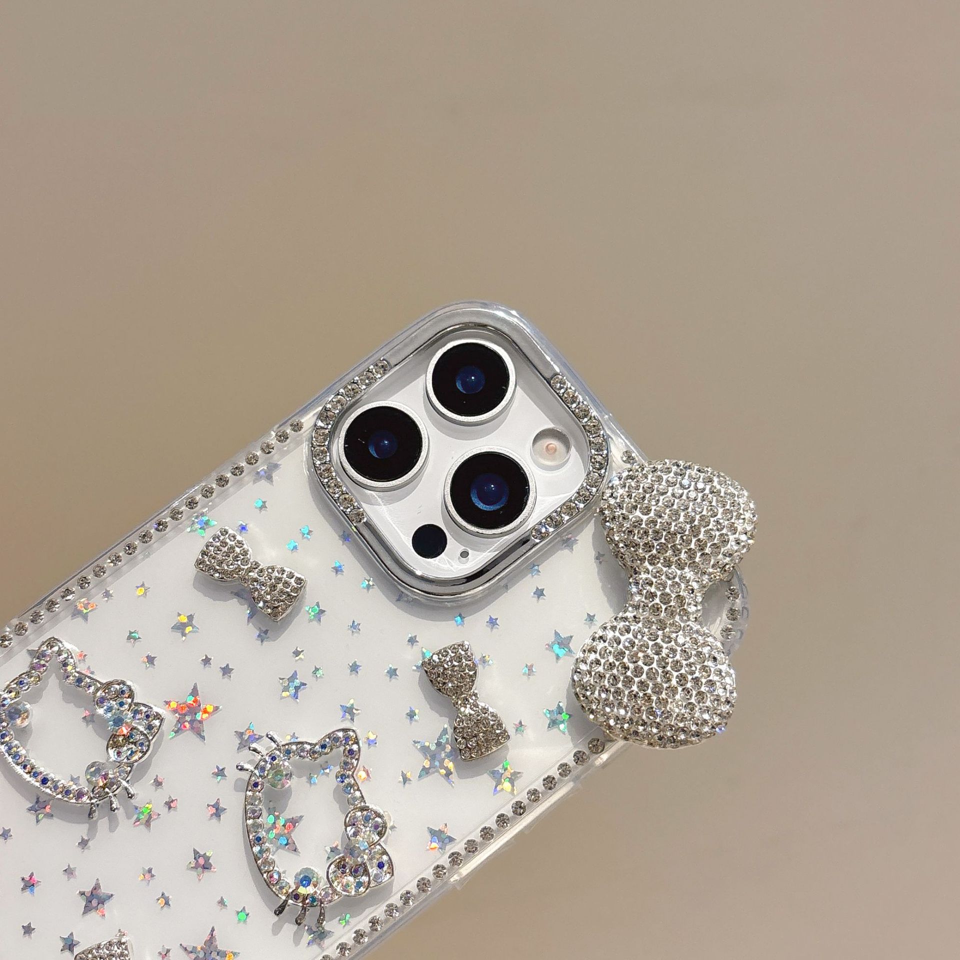 iPhone16promax 글리터 스타 휴대폰 케이스에 적합한 라인스톤 KT 고양이 다이아몬드 입체 Apple 15 케이스스토어 가기