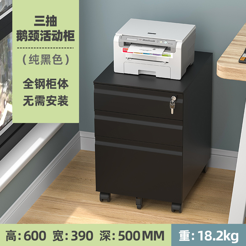 • 측면 풀 3단 이동식 캐비닛(검은색)