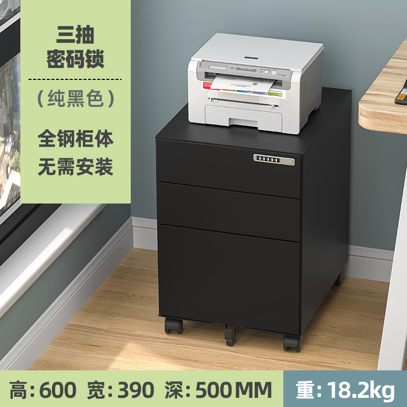 • 3단 콤비네이션 자물쇠 이동식 캐비닛(블랙)
