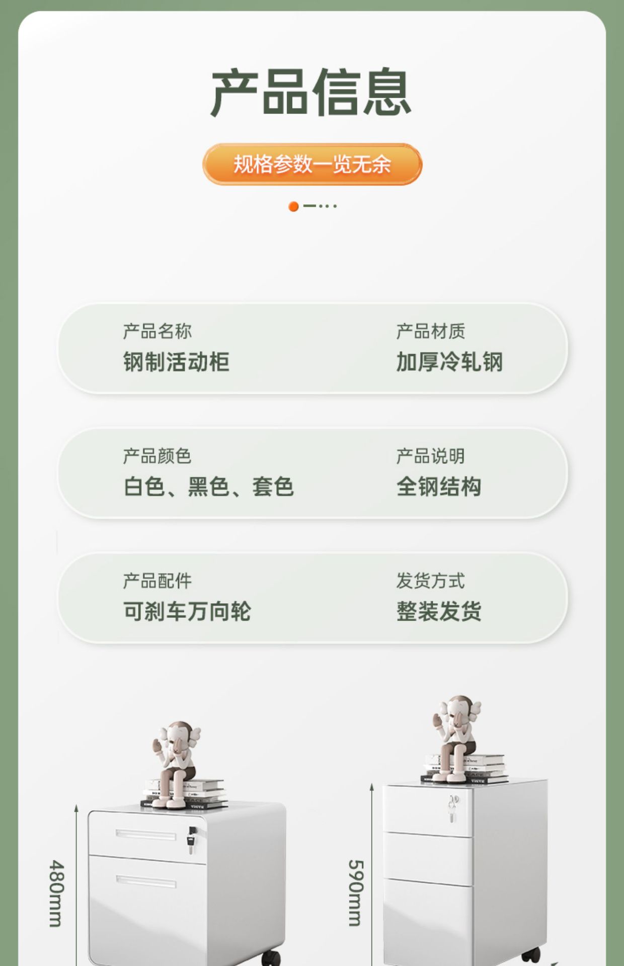 • 측면 풀 3단 이동식 캐비닛(흰색)