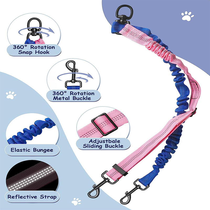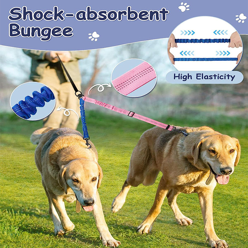 애완동물용 국경 간 견인 로프, 자동 개폐식, 1대 2개의 개를 위한 야외 개 산책용, 방폭형, 2색 견고한 개 로프