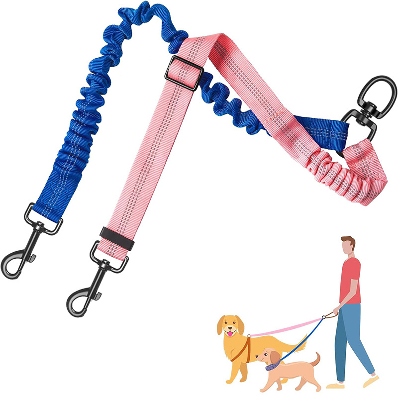 애완동물용 국경 간 견인 로프, 자동 개폐식, 1대 2개의 개를 위한 야외 개 산책용, 방폭형, 2색 견고한 개 로프스토어 가기