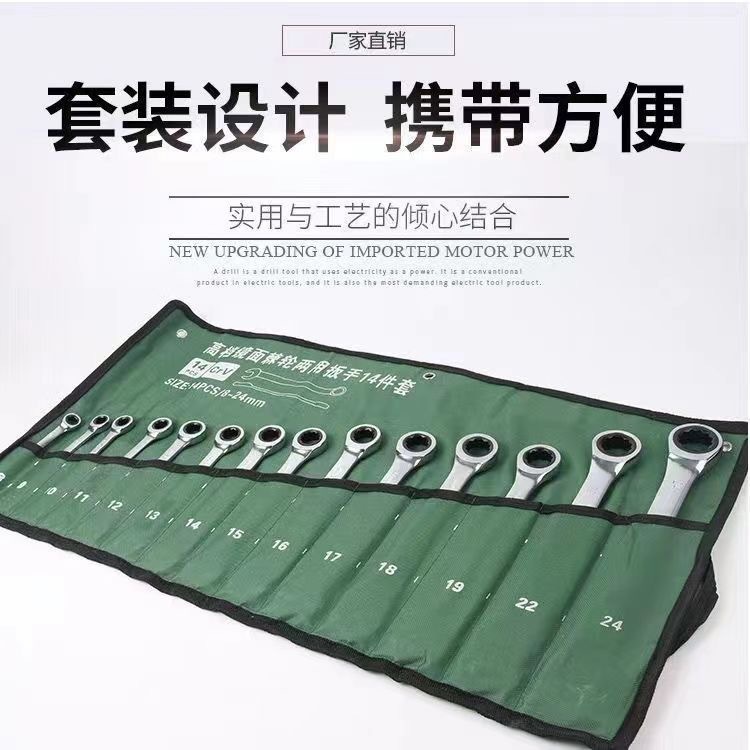 래칫 겸용 렌치 14피스 세트 72톱니 크롬 바나듐강 8-24 미러 렌치 천 가방스토어 가기