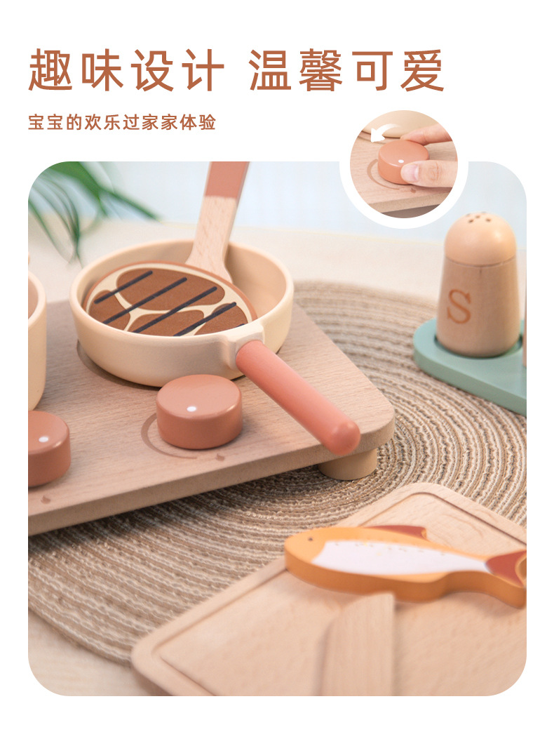 나무 어린이 시뮬레이션 놀이 집 시뮬레이션 요리 작은 스토브 주방 요리 냄비 세트 교육 장난감스토어 가기