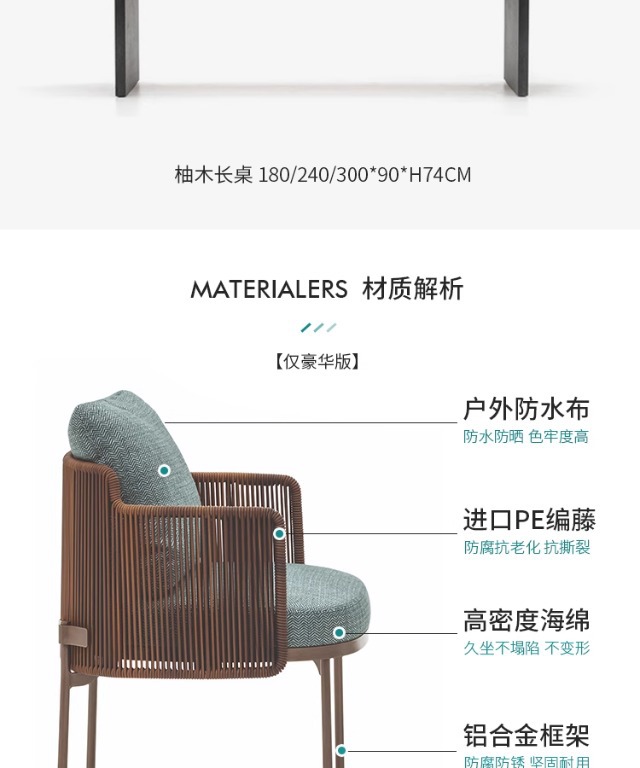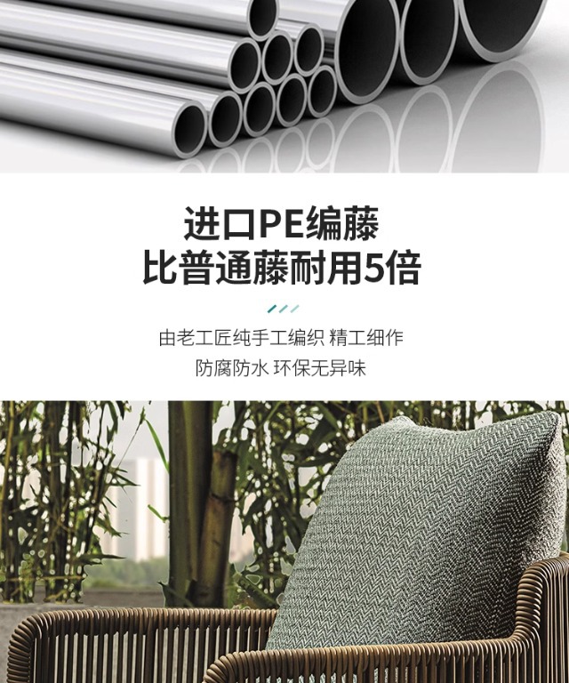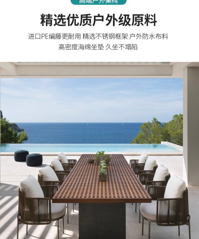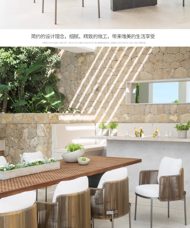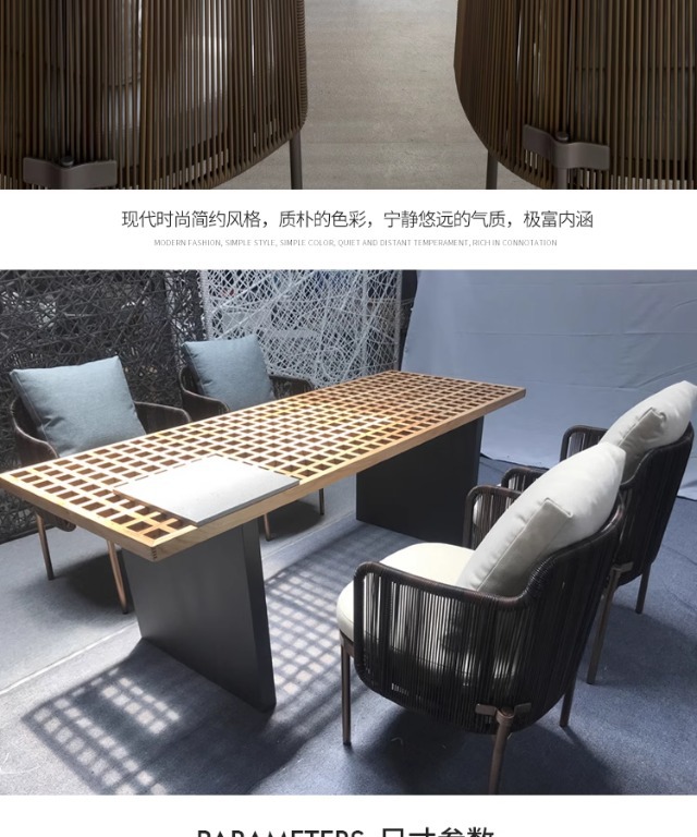 북유럽 스타일 야외 테이블과 의자 세트, 예술적 디자이너 가구, 라탄, 티크, 스테인리스 스틸, 라탄 의자, 식탁, 라이트 럭셔리 스타일