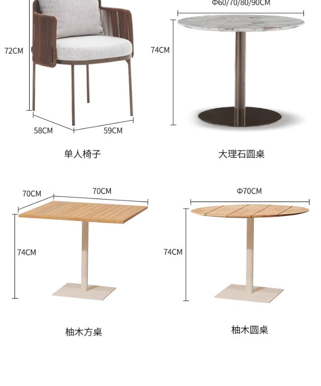 북유럽 스타일 야외 테이블과 의자 세트, 예술적 디자이너 가구, 라탄, 티크, 스테인리스 스틸, 라탄 의자, 식탁, 라이트 럭셔리 스타일스토어 가기