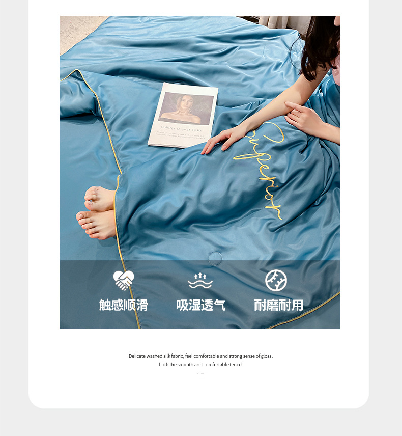 여름 워시 실크 여름 이불 얼음 실크 에어컨 이불 기계 세탁 가능한 여름 시원한 이불 얇은 이불 선물 이불 도매