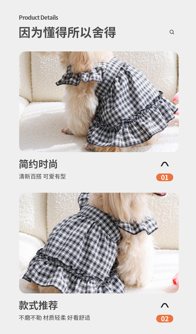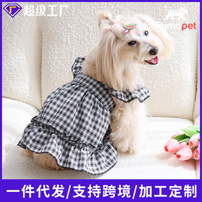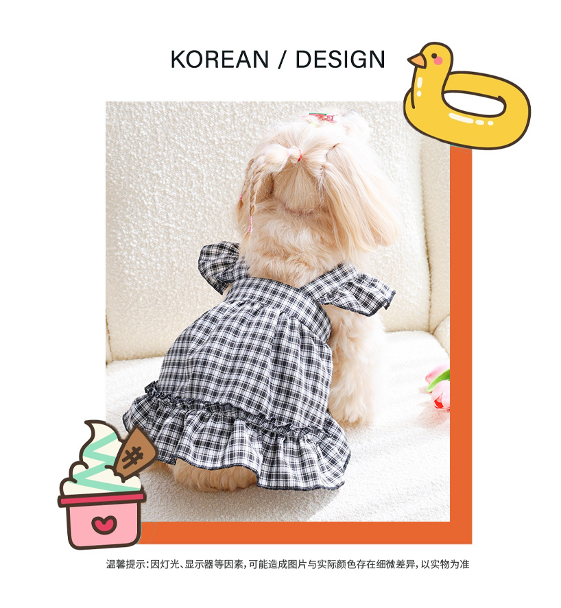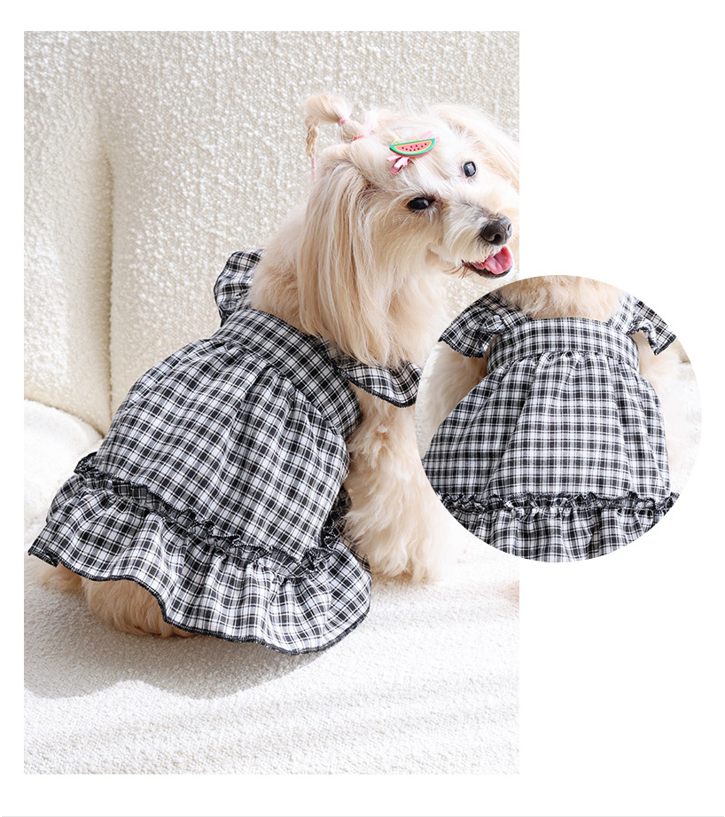 맞춤 제작된 작은 격자무늬 플라잉 슬리브 슬립 드레스 고양이 드레스 강아지 옷 시원하고 통기성 좋은 여름용 고양이 의류스토어 가기