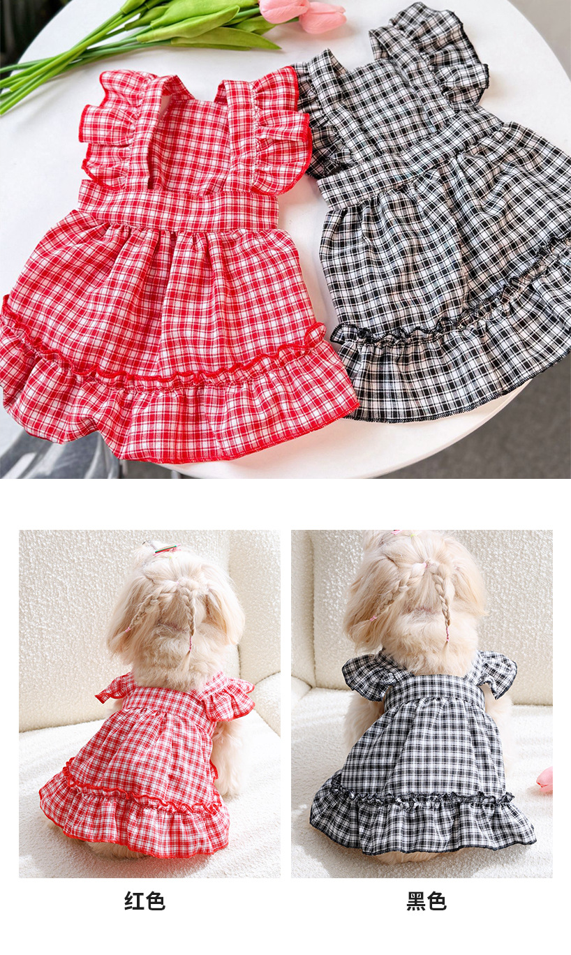 맞춤 제작된 작은 격자무늬 플라잉 슬리브 슬립 드레스 고양이 드레스 강아지 옷 시원하고 통기성 좋은 여름용 고양이 의류