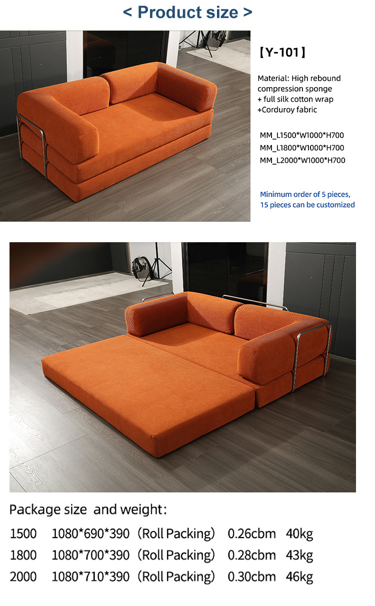 압축 소파 베드, 풀 스펀지 소파, 코듀로이 소파, 프리 콤비네이션 패브릭, 소형 가정용 이중 목적 접이식 소파