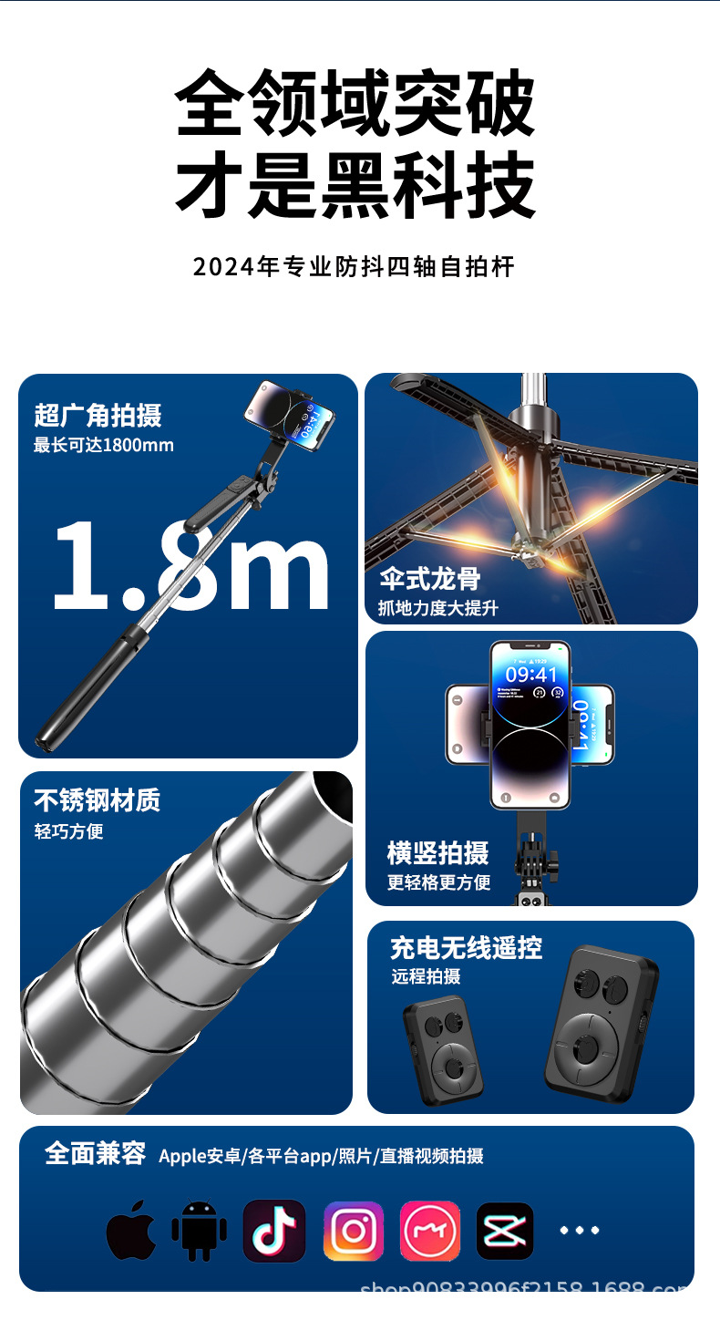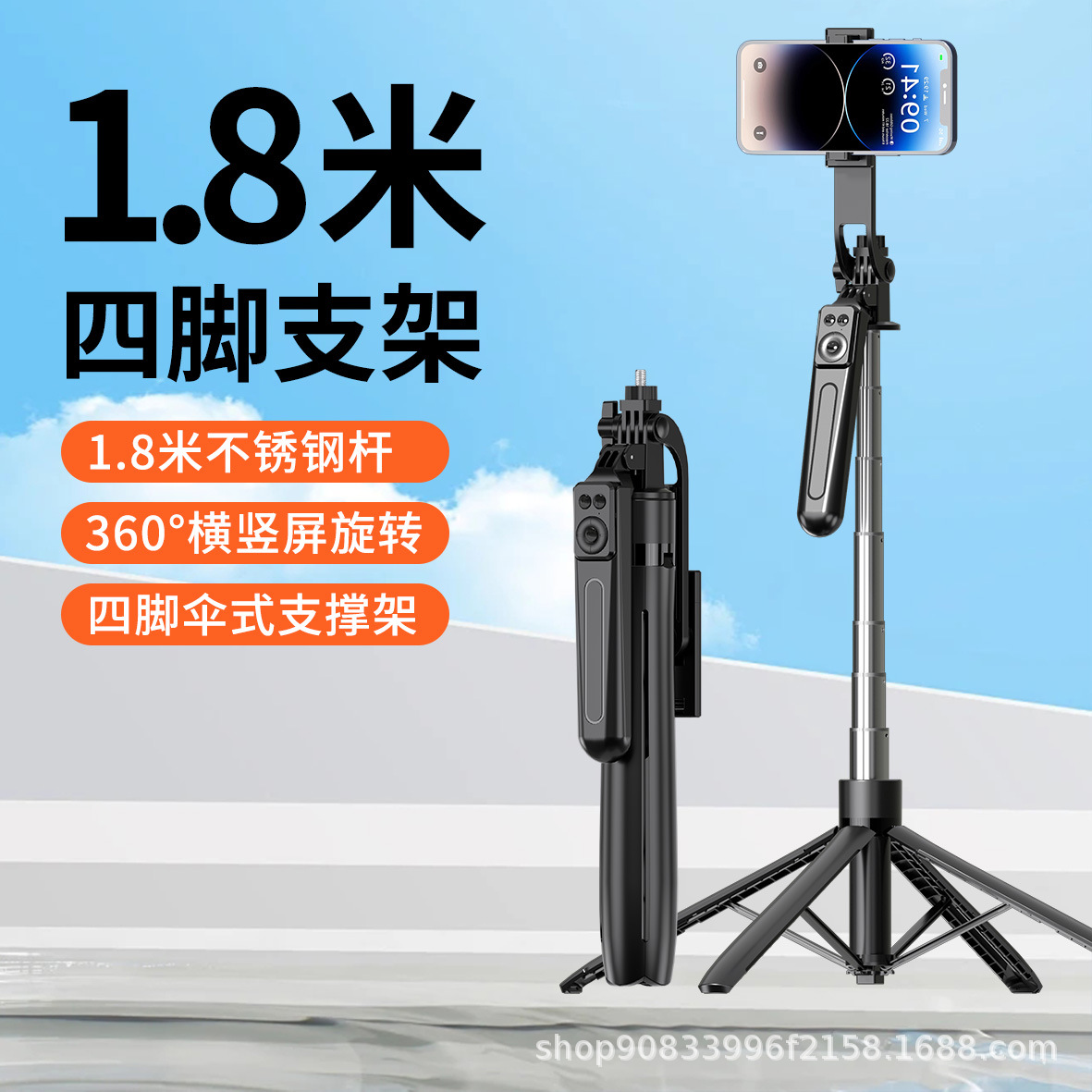 스테인레스 스틸 튜브 4개의 다리가 라이브 사진 촬영을 지원합니다. 1.8m 뷰티 필 라이트 B17 셀카봉 스탠드스토어 가기